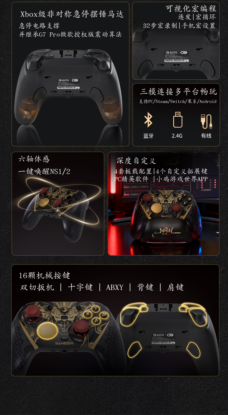 盖世小鸡G7pro天王星8K仁王3联名款游戏手柄pc电脑版steam手机switch2蓝牙竞技fps体感apex无线体感电视ns