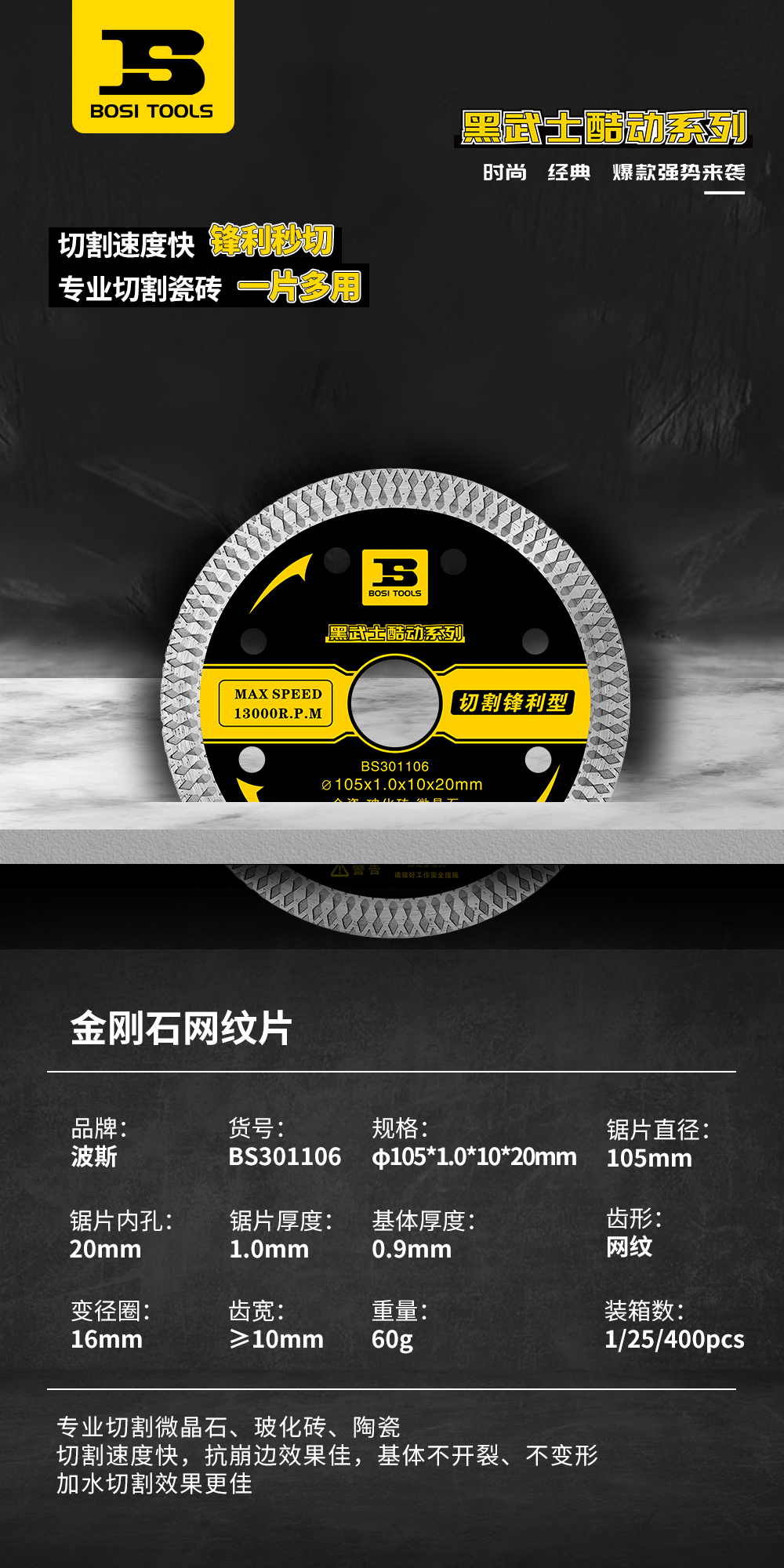 波斯 金刚石网纹片 黑武士 105*1.0*10*20 BS301106