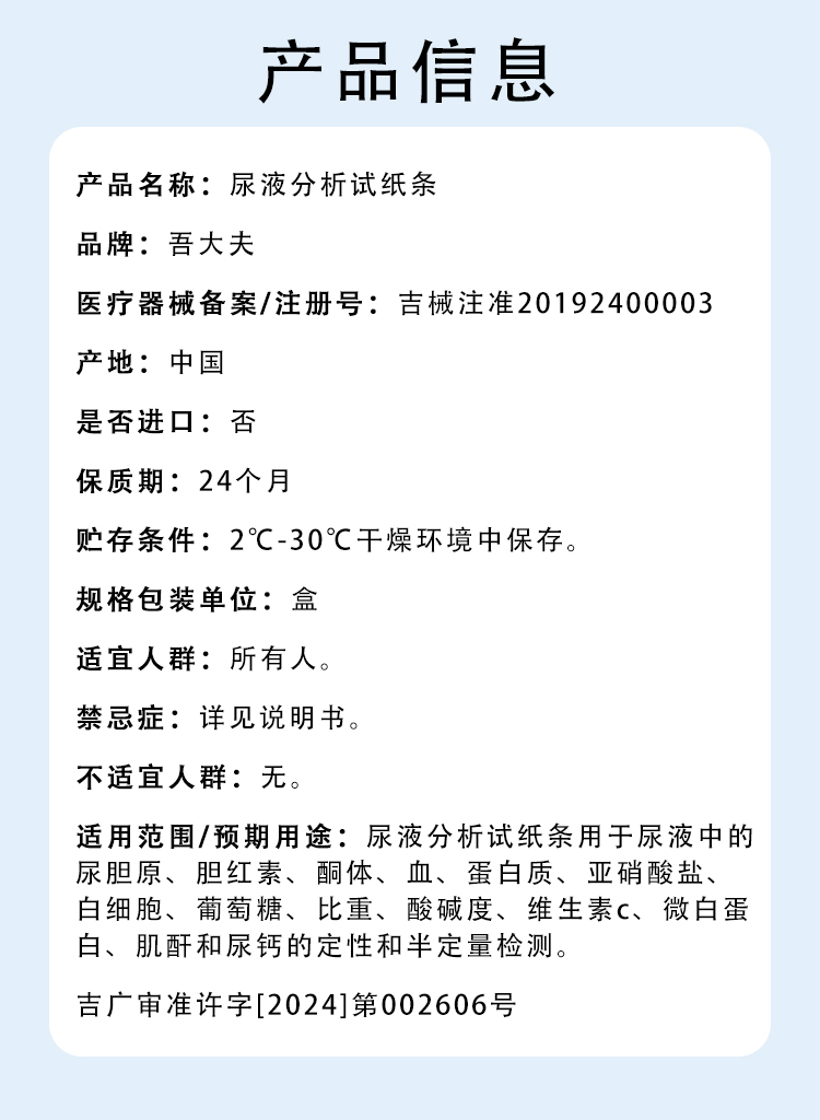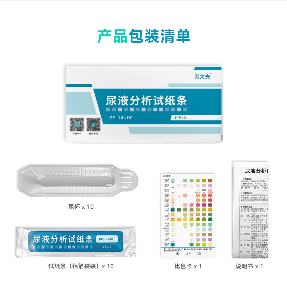 吾大夫尿液分析试纸条 (10人份)家用检测14项尿糖蛋白质酮体白细胞