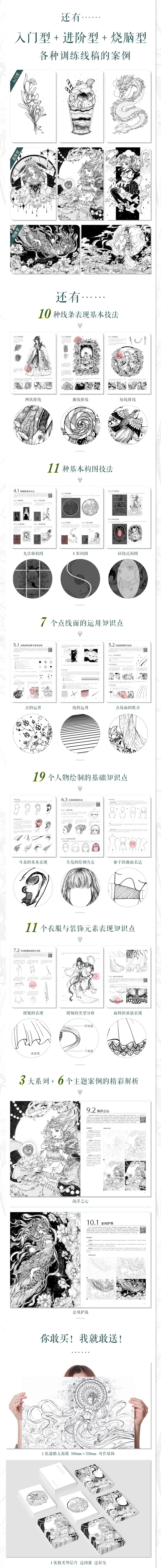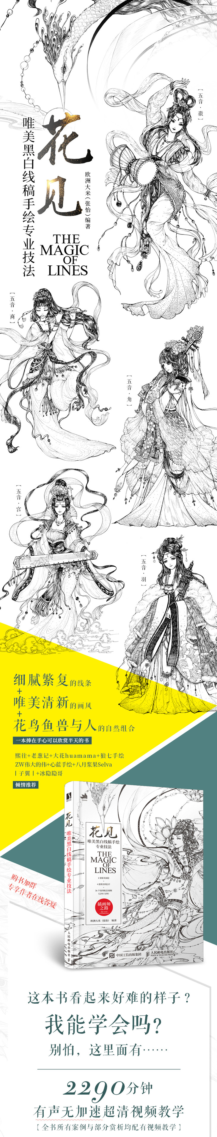 日常生活中,每个人心底都有自己的小世界,不断地收集一些美好的事物。将这个小世界通过绘画的方式表达出来,是一件再幸福不过的事情了。这是一本风格唯美而又细腻的黑白插画教程,主要讲解如何运用针管笔塑造画面形态并刻画细节,*终形成风格多样且氛围浓厚的黑白画。 本书分为3个部分,共11章,内容安排上由浅入深、循序渐进,从较基本的画材选购到完整案例图的绘制,都有非常详细的分析与讲解。*1部分为理论篇,主要介绍绘画前工具的准备和如何整理绘画思路。*2部分为技法篇,前半部分主要针对线条绘制、构图及点线面的结合运用等来深入解析黑白画的绘制技巧,后半部分详细分析人体结构和各个部位的绘制方法,并进一步介绍衣服和装饰元素的绘制方法。第3部分为案例篇,主要讲解清新童话少女风格、奇幻古风创意风格和萌趣童真少女风格这3种主流风格的黑白画的绘画技巧与方法。此外,本书针对一些基本操作技巧与案例,以二维码的形式给读者提供了同步配套视频,以满足读者即扫即看的需求。 本书内容全面系统,题材丰富,具有学习性和观赏性,适合黑白插画爱好者、插画初学者及有一定经验的插画师参考学习。