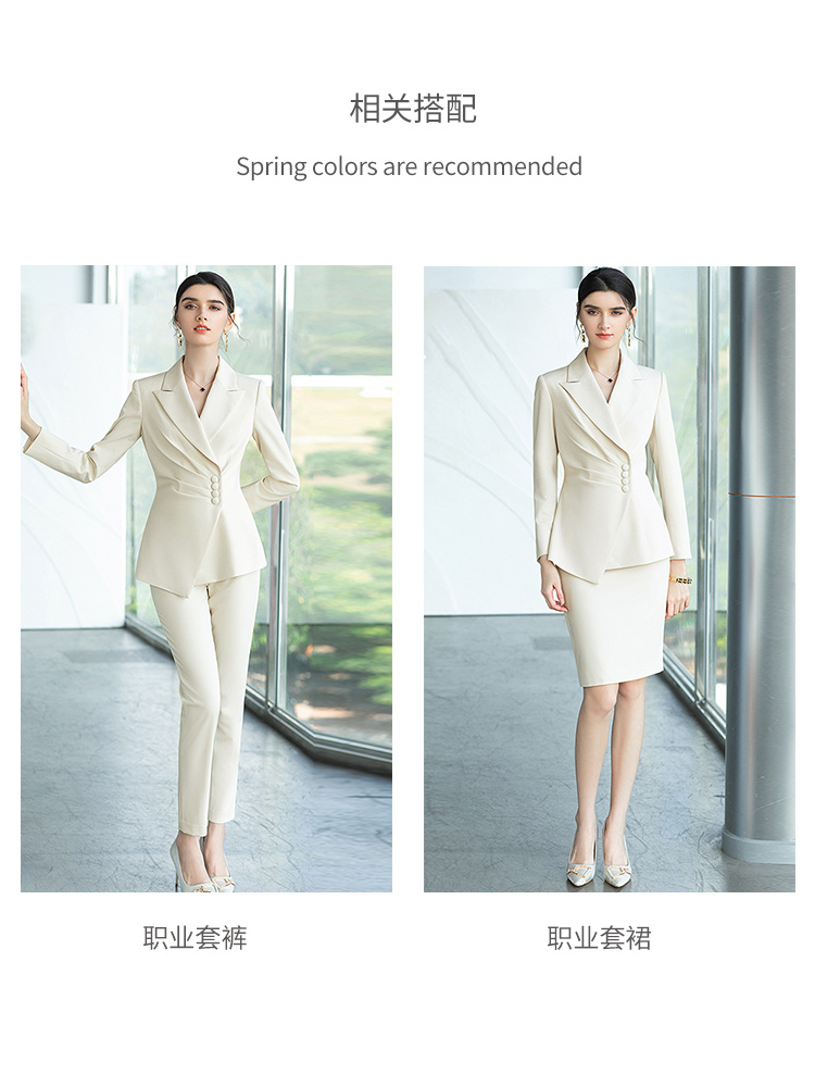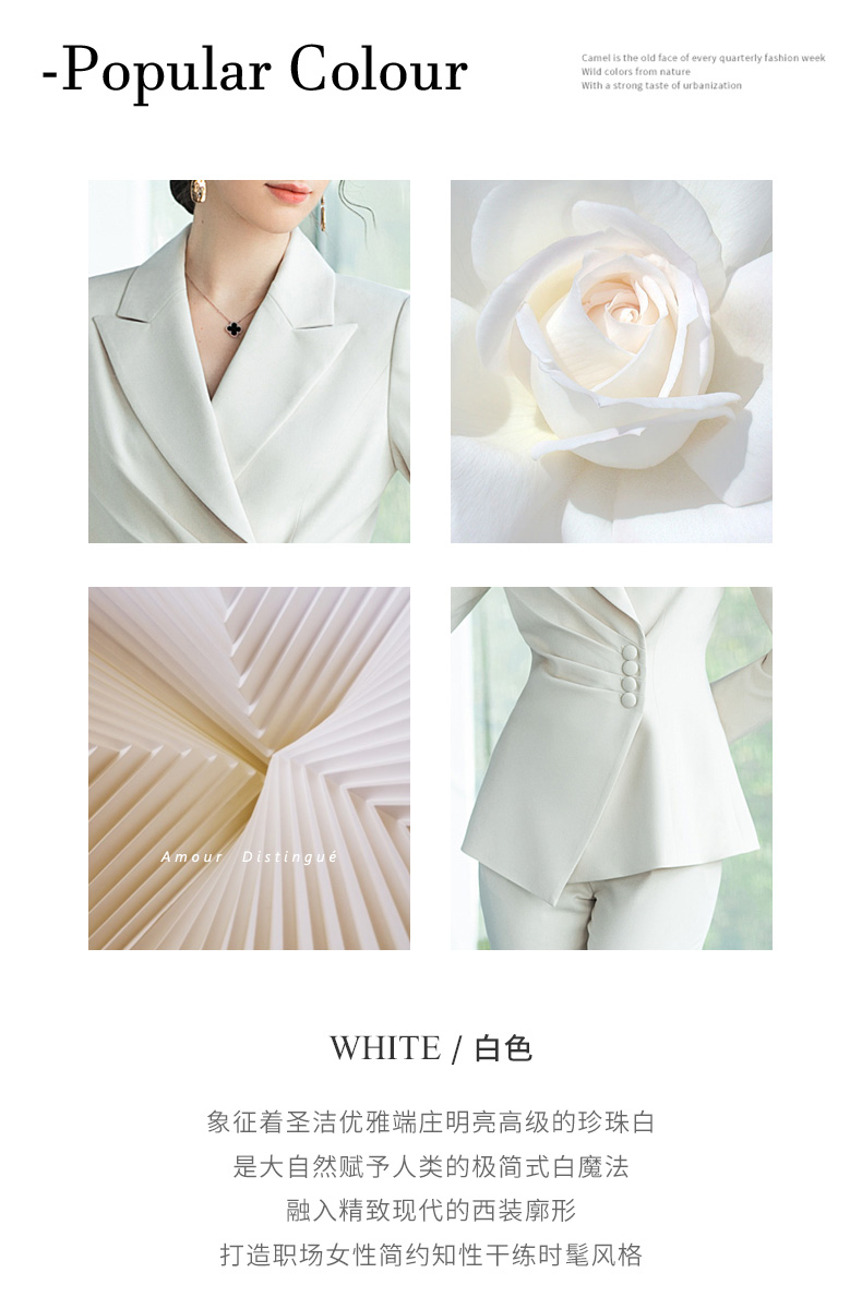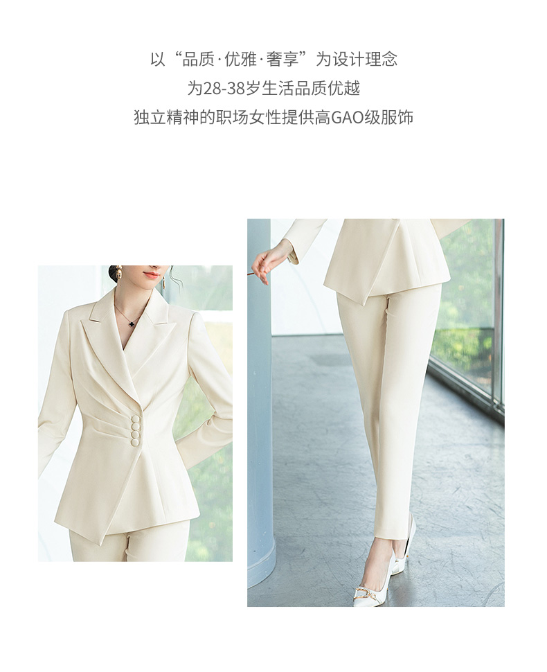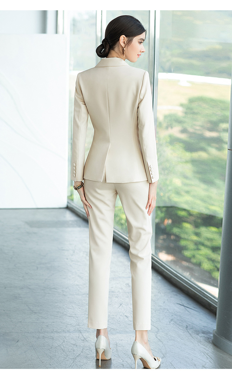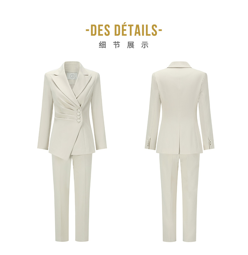 AD浅色职业装西装女秋时尚套装主持人艺考正装修身显瘦米白色西服