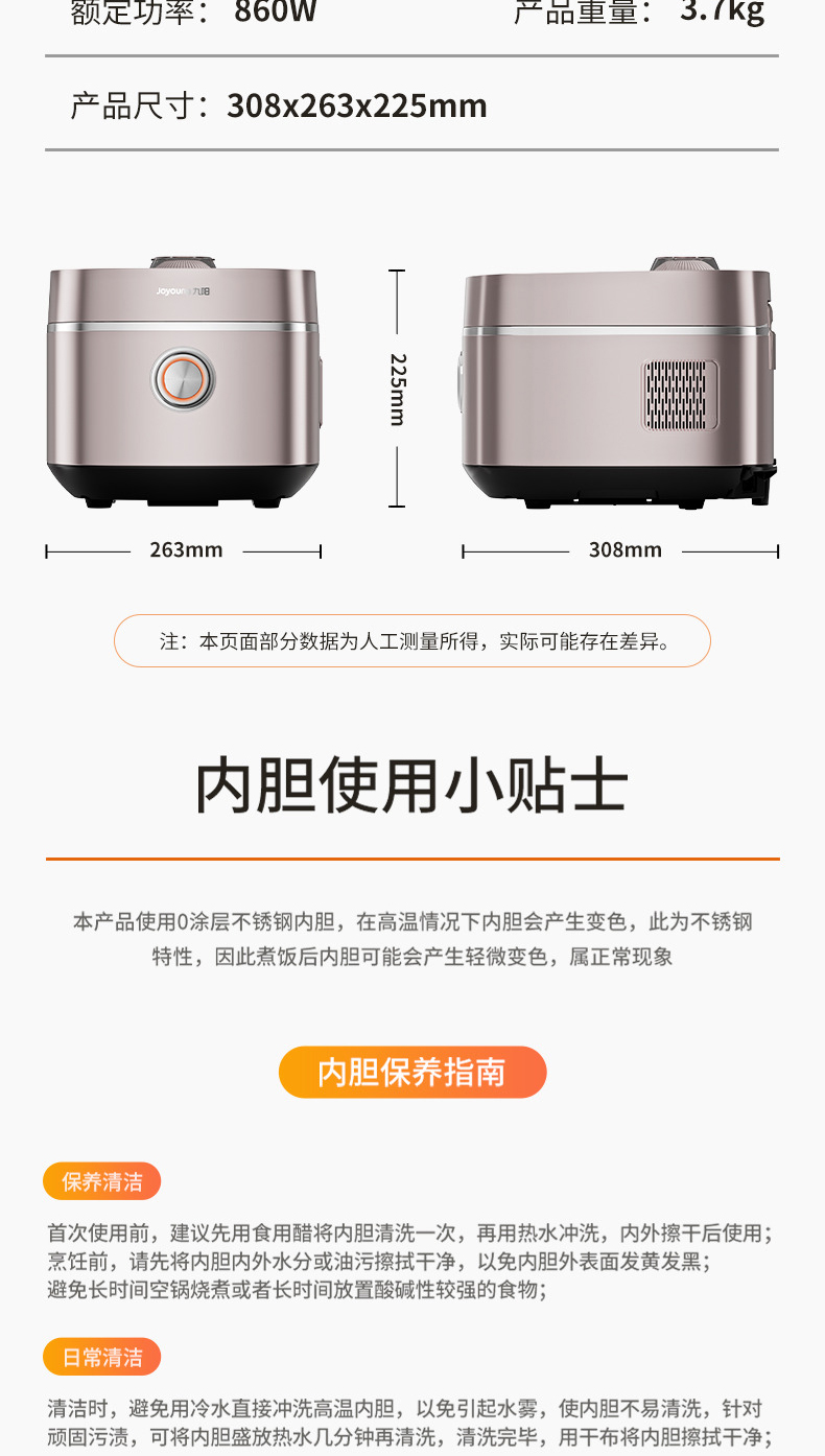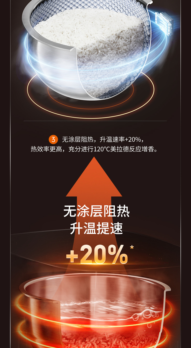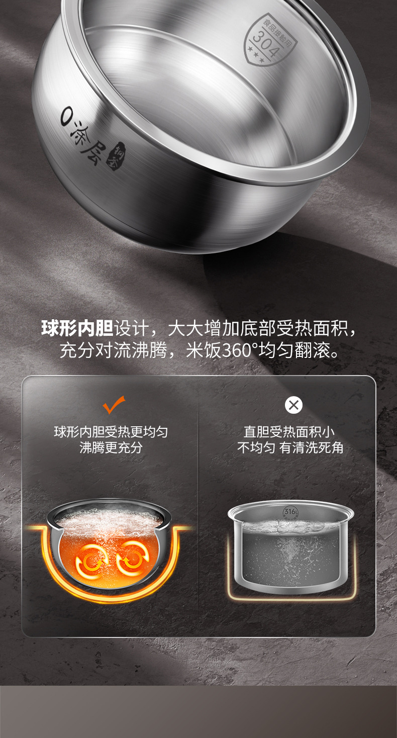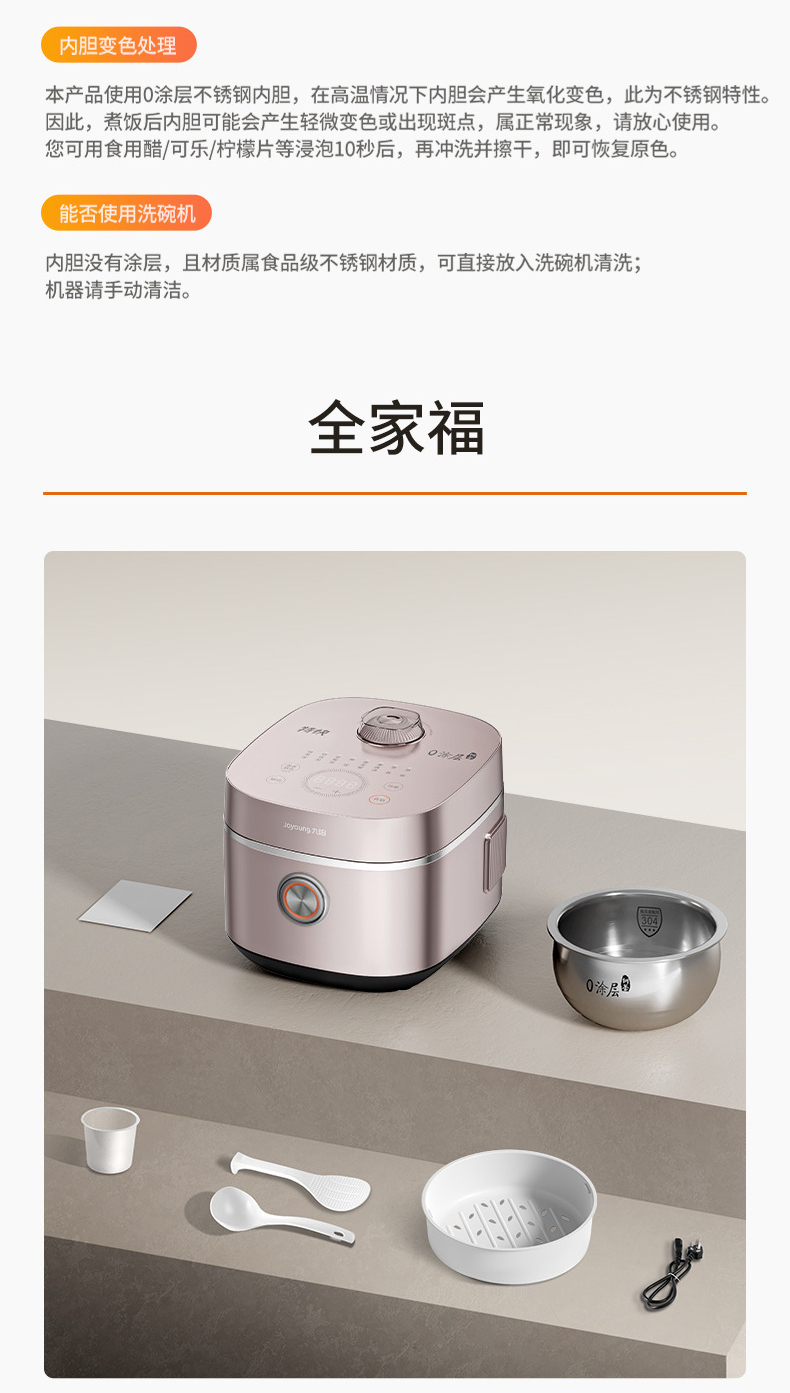 九阳0涂层电饭煲22min特快饭304不锈钢球胆智能预约家用电饭锅4升