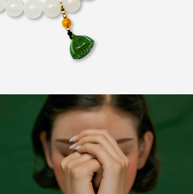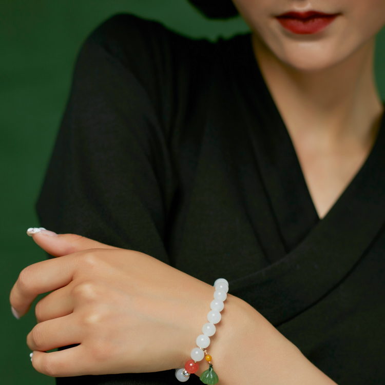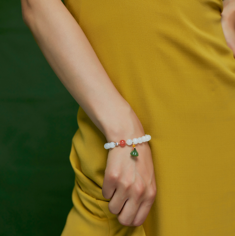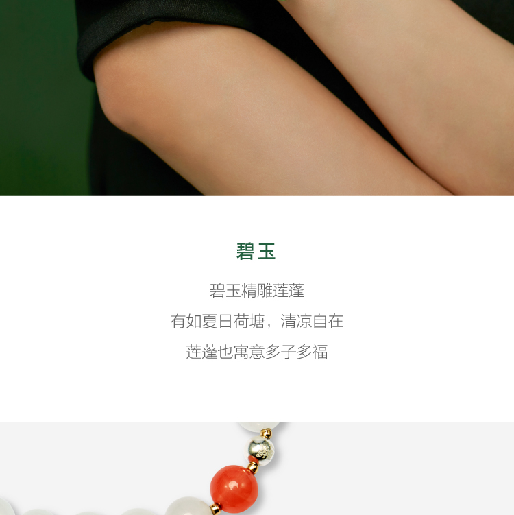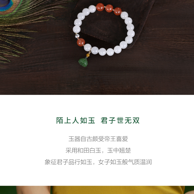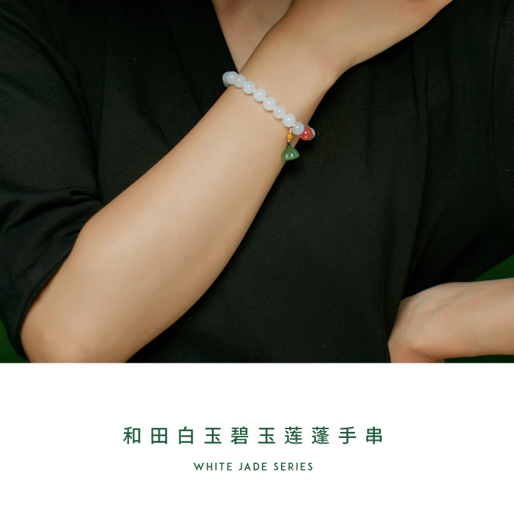 和田玉白玉手串手链搭天然碧玉莲蓬925银国风汉服礼物醍醐原创设计