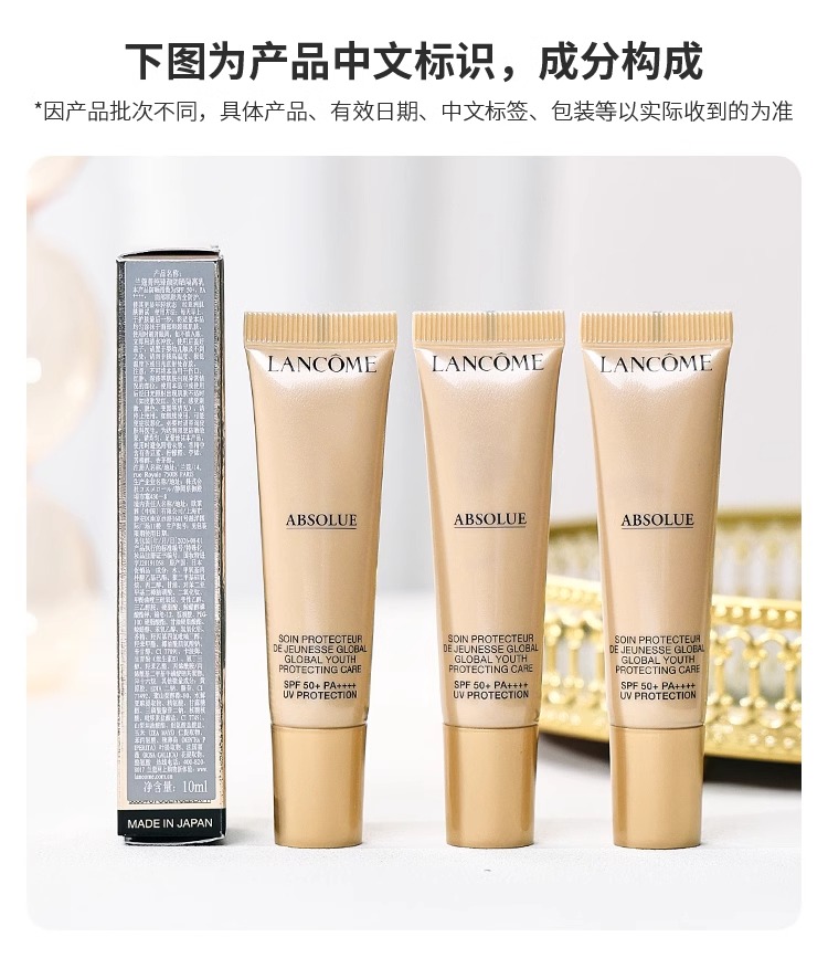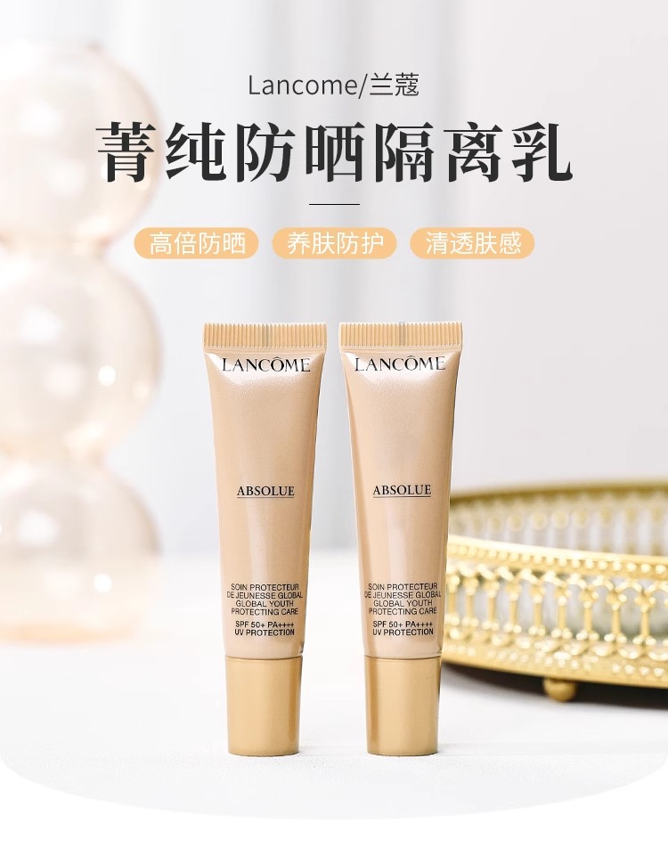 【临期清仓 买一赠三】Lancome兰蔻菁纯臻颜防晒霜50ml+(临期)10ml小样*3 隔离乳 提亮肤色 SPF50+(10ml小样效期至26年9月 介意勿拍)