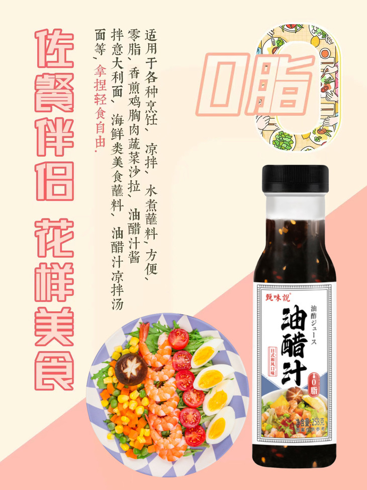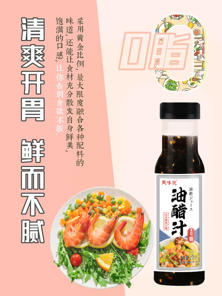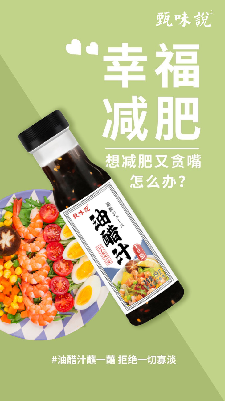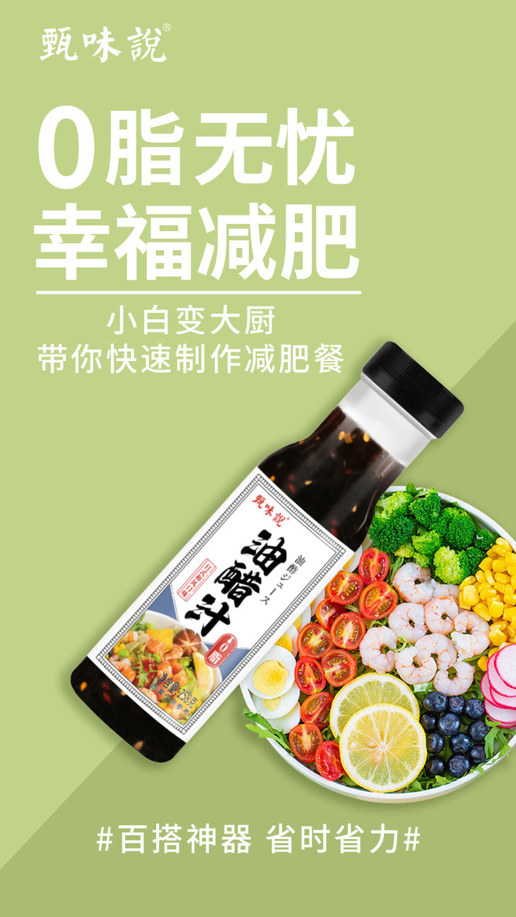 🔥3瓶油醋汁🎁送黑胡椒研磨料1瓶/80g💰只需29.9甄味说油醋汁0脂健身轻食水煮蘸料