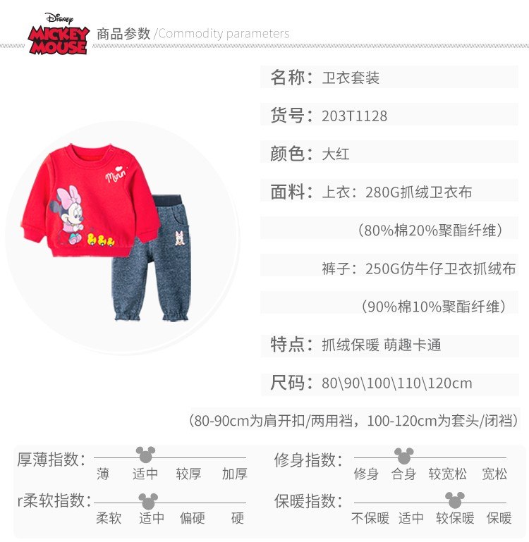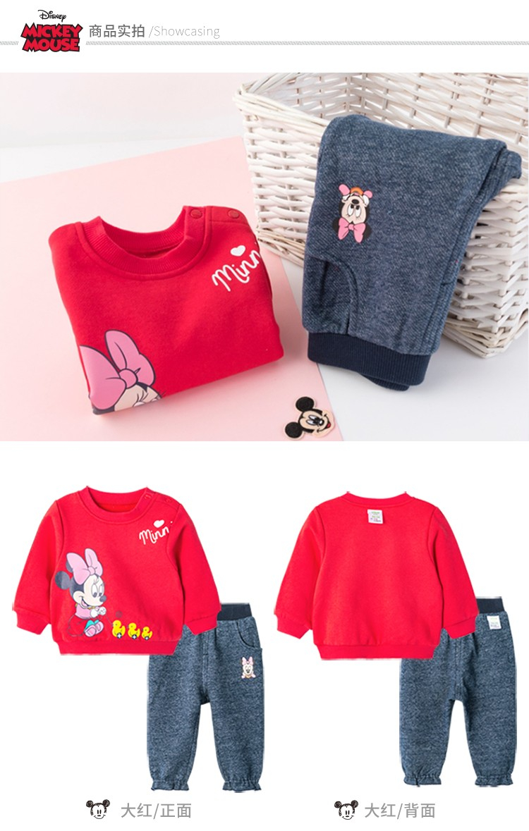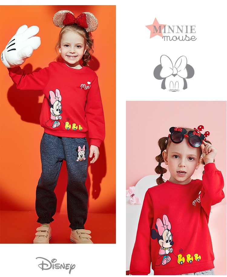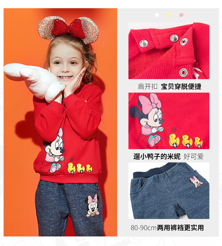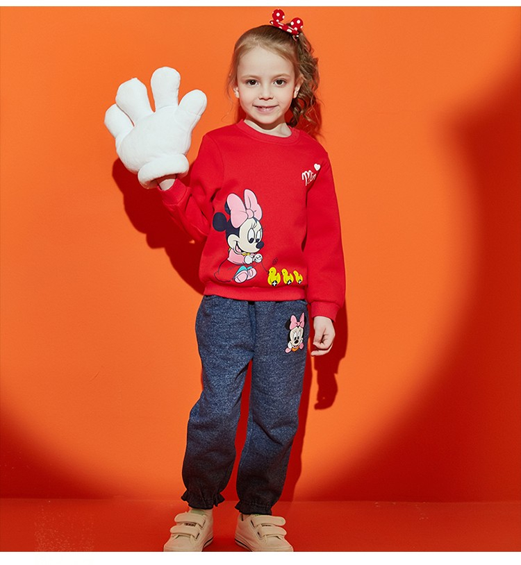 迪士尼(Disney)童装女童米妮印花抓绒卫衣套装