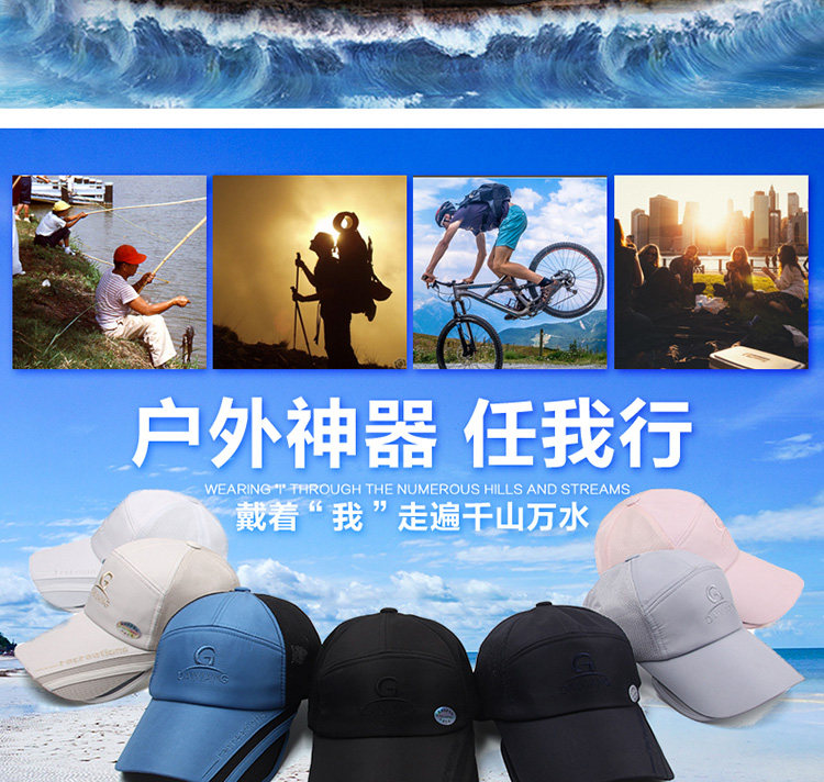 【优美】夏天遮阳帽户外钓鱼帽大沿鸭舌帽