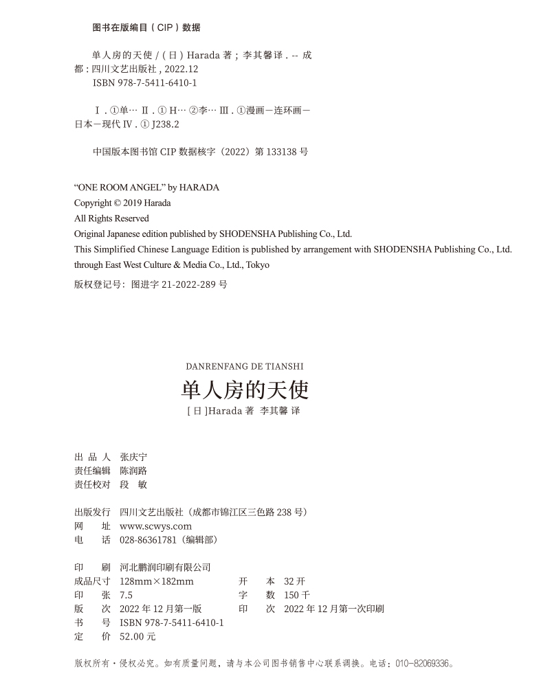 单人房的天使 漫画家Harada老师 漫画绘本青春小说