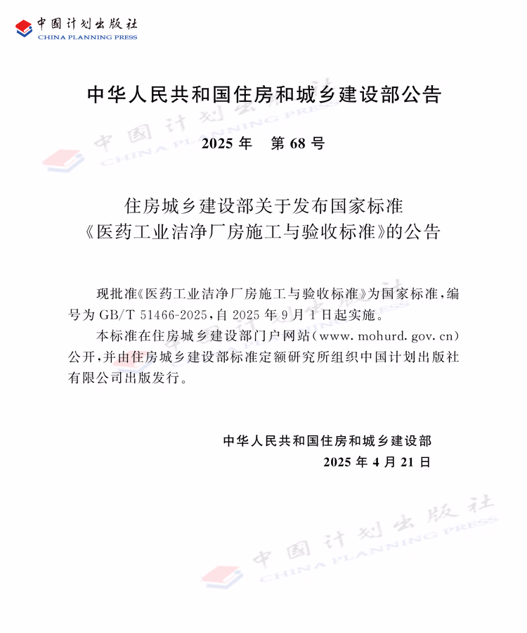 GB/T 51466-2025 医药工业洁净厂房施工与验收标准