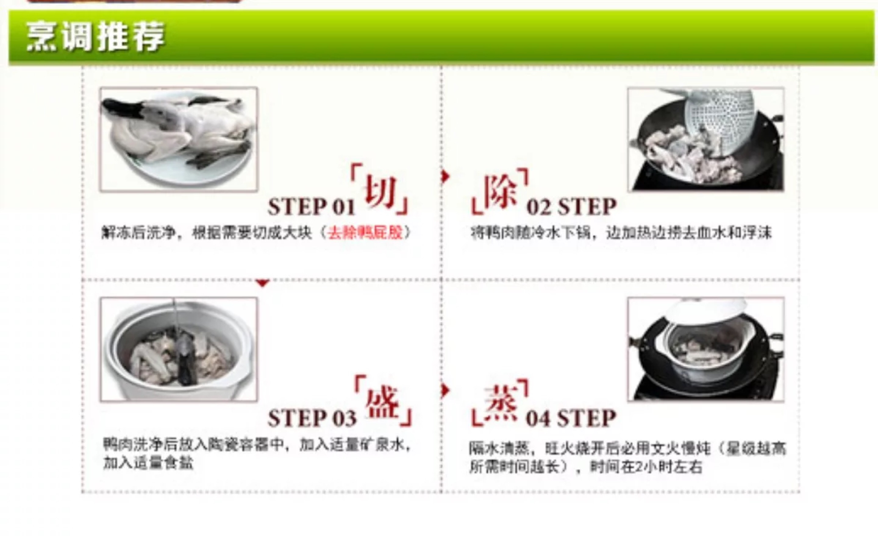 连城白鸭又称白鹜鸭,白羽、乌嘴、黑脚,原产地福建省连城县,是闽西名特产,肉质鲜嫩、汤味清醇,煨煮时除盐外无需添加任何佐料,无腥味,不油腻。