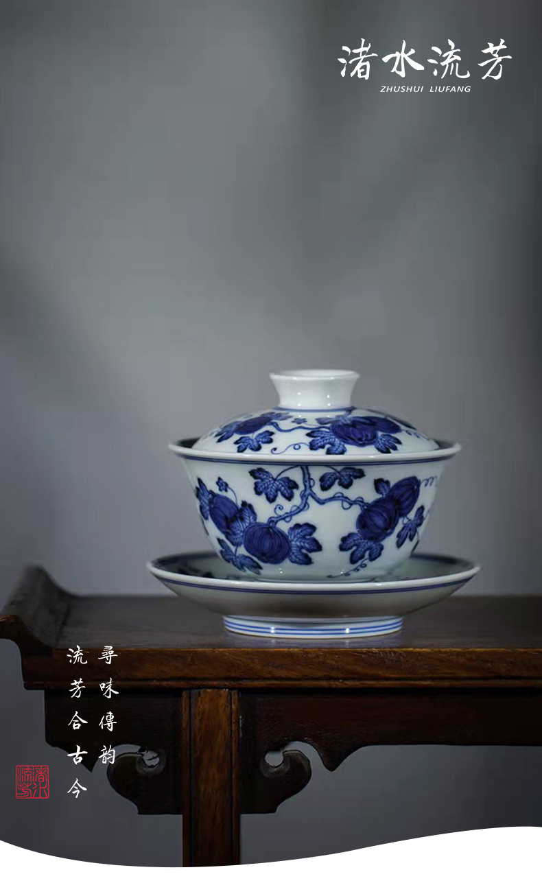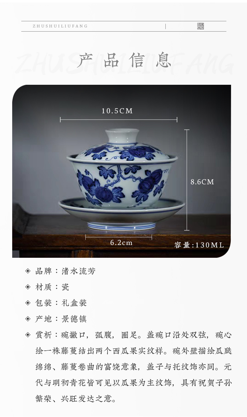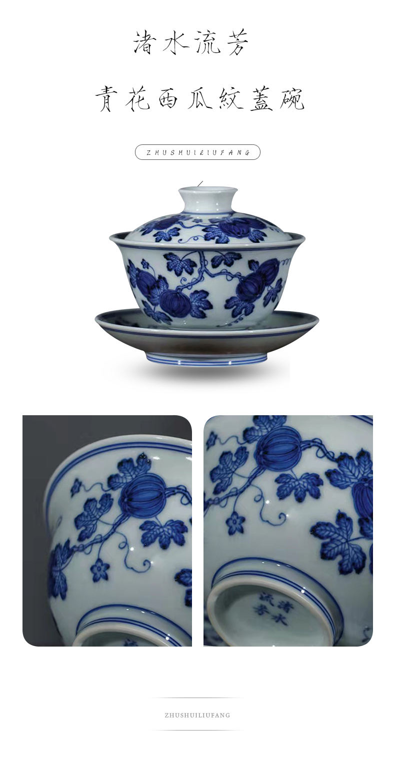 渚水流芳青花西瓜纹盖碗(缺货)