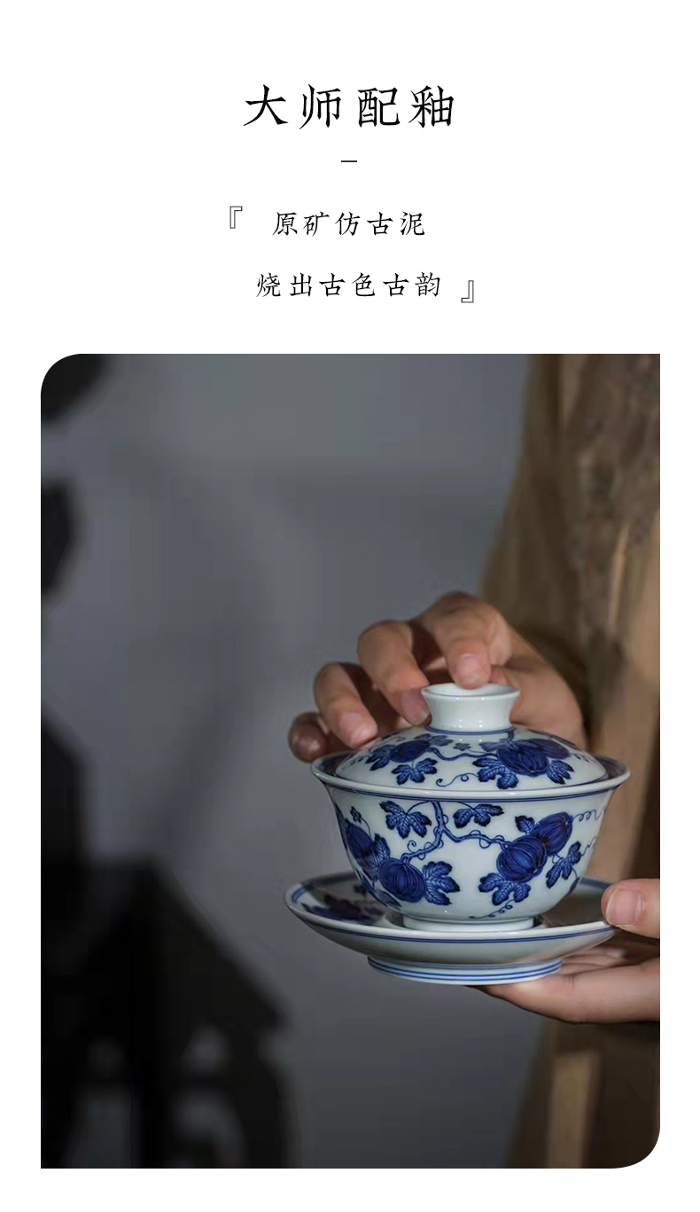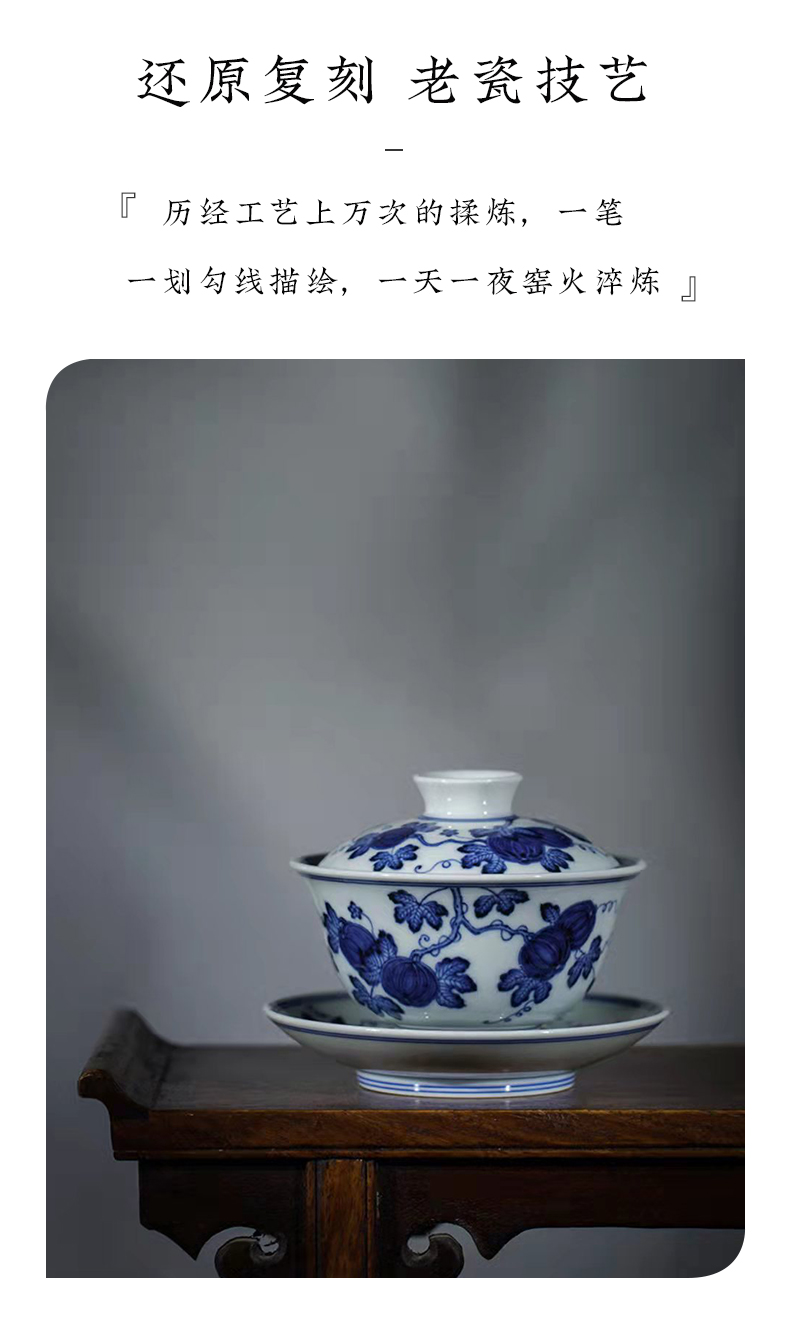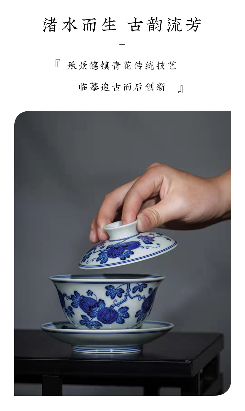 渚水流芳青花西瓜纹盖碗(缺货)