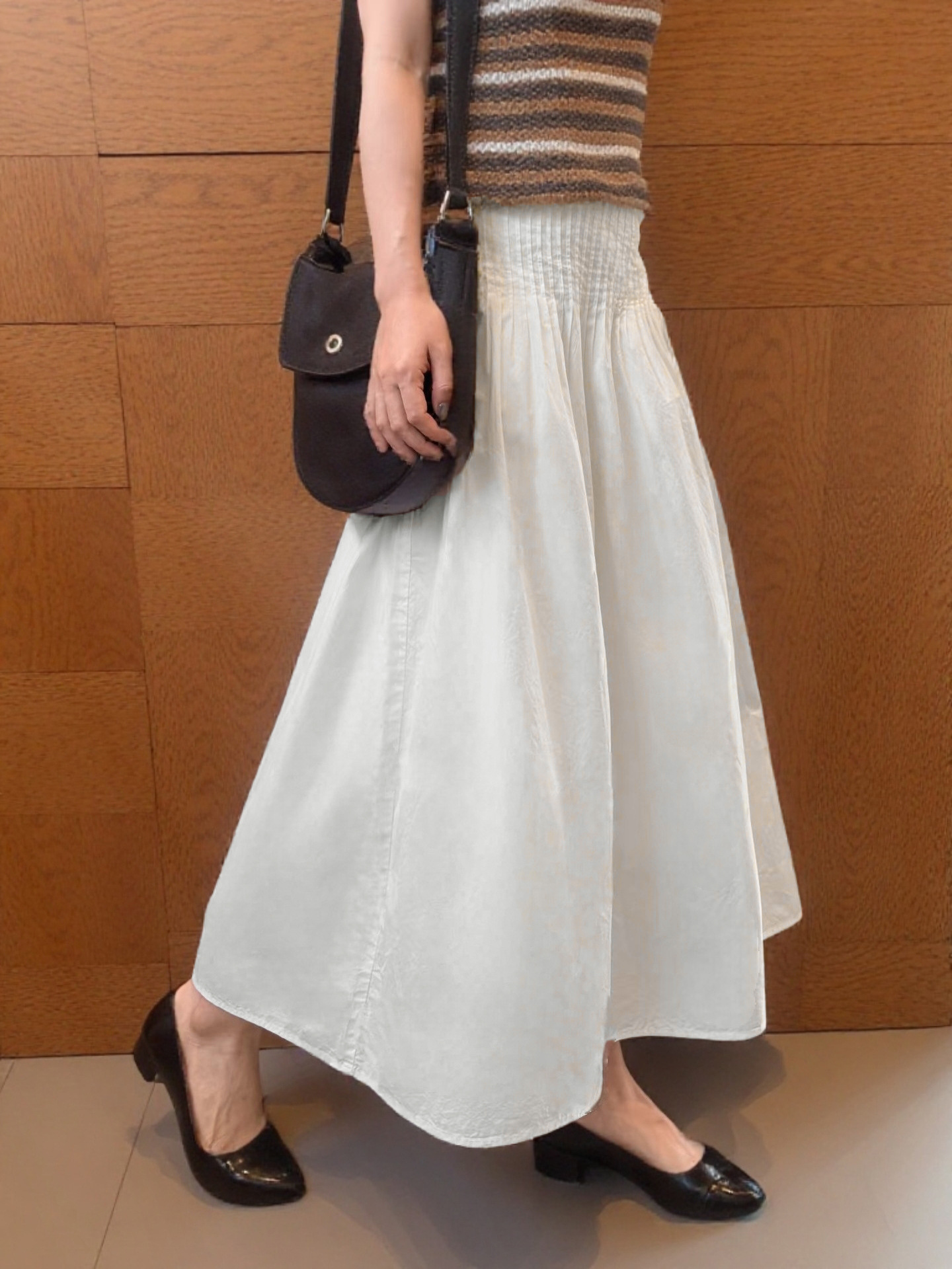 高级感!2026小众束腰A字百褶半身裙女春新款设计感中长款大摆伞裙!