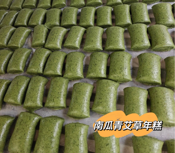 用南瓜叶和艾草叶制作的特色年糕