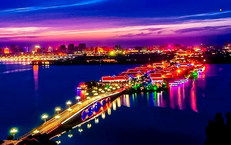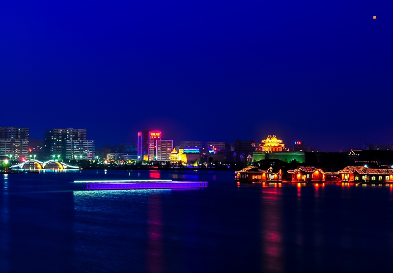 东昌湖与杭州西湖、南京玄武湖并称“全国三支市内名湖”,素有“南有西湖,北有东昌”之称,中华水上古城是一座飘在水上的千年古城,四周环水,大家可自由寻觅小吃、逛湖景、赏夜色,你也不防骑上脚踏车,来个环湖夜骑,更是一种享受。这里灯色夜秀异常美丽。