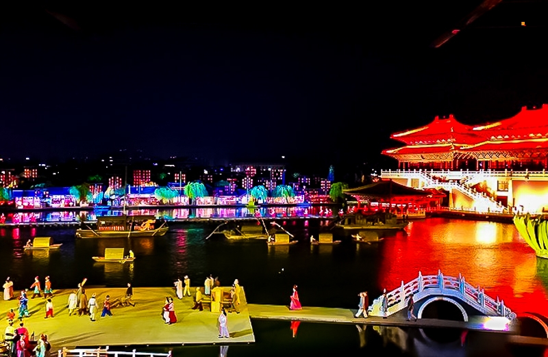 - 晚上|参观大型实景演出《大宋•东京梦华》,由几首宋词串联而成,演绎了北宋的兴衰和市井文化。整部演出既有气势恢宏的水战,也有温婉可人的词人悲情。最为印象深刻的是,穆桂英骑着白马在舞台中央铿锵的唱着古词,让人有热血沸腾,洒血沙场的壮烈。