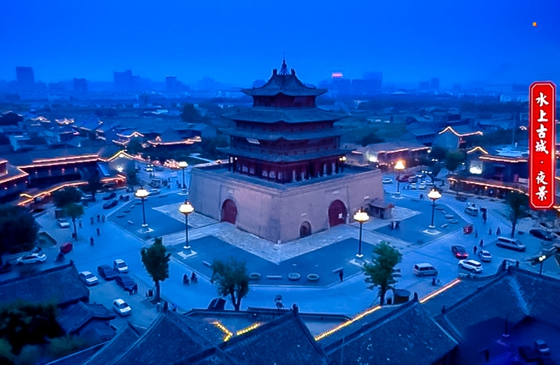 中华水上古城建设以光岳楼为中心,利用十字步行商业街将城区用地分为四块。十字大街为商业步行街,两侧以传统风情的商业为主。楼东大街以休闲、保健、养生为主;楼西大街为时尚、高档商品街;楼北大街为餐饮一条街;楼南大街为文化一条街。城市单元的中心地块为风情居住区,以四合院形式住宅为主,临街巷的建筑作民间特色小商业使用,前店后宅,灵活方便。
