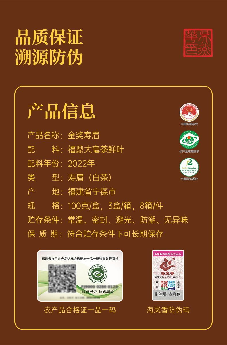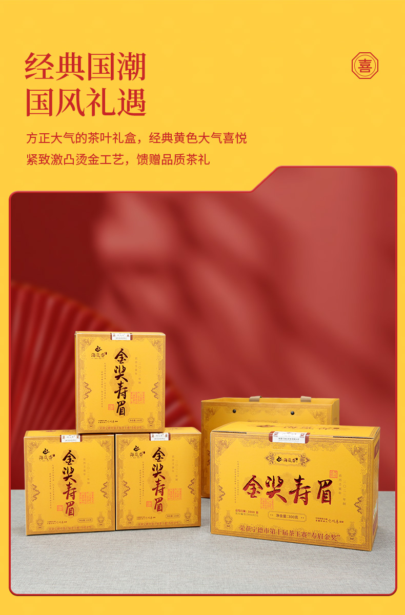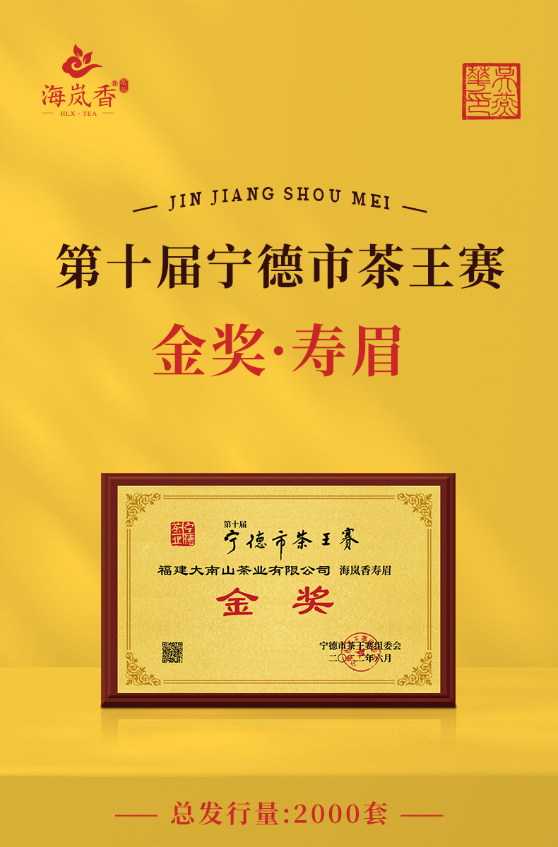 海岚香 2022金奖寿眉 散装白茶 国风礼盒 100g*3盒/箱