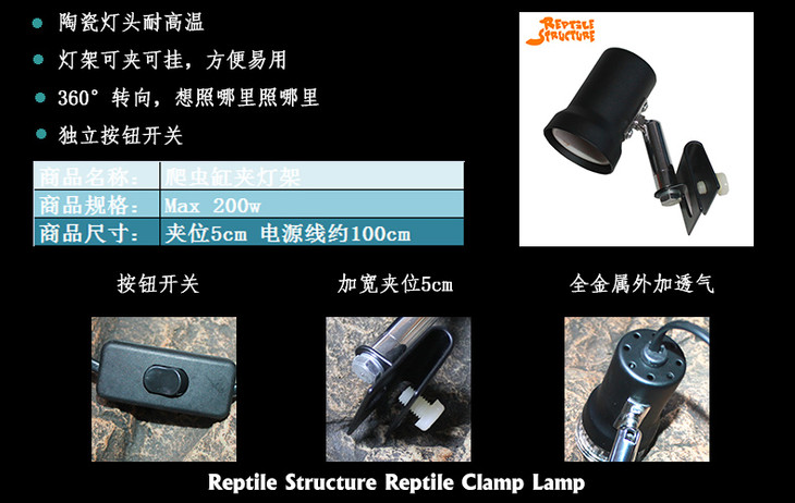 Reptile Structure-爬结构 龟缸灯架太阳灯晒背灯灯夹UVBUVA灯罩可上紧在玻璃边缘螺丝包邮-分销