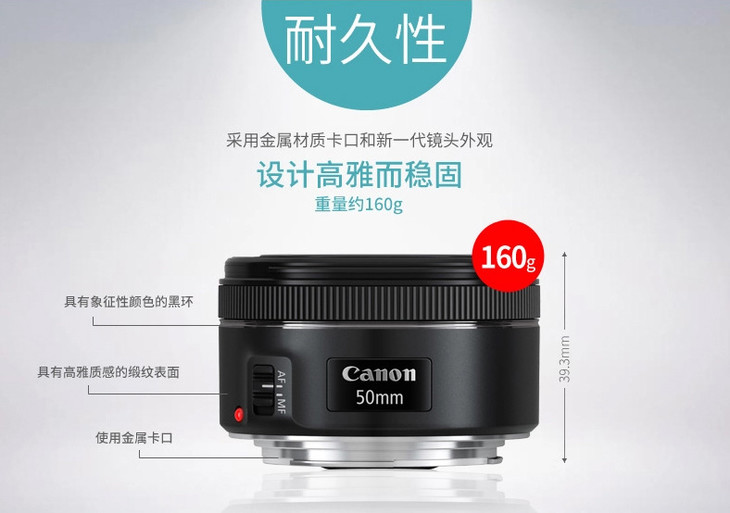 【canon单反镜头】Canon/佳能 EF 50mm f/1.8 STM 人像三代小痰盂标准单反定焦镜头