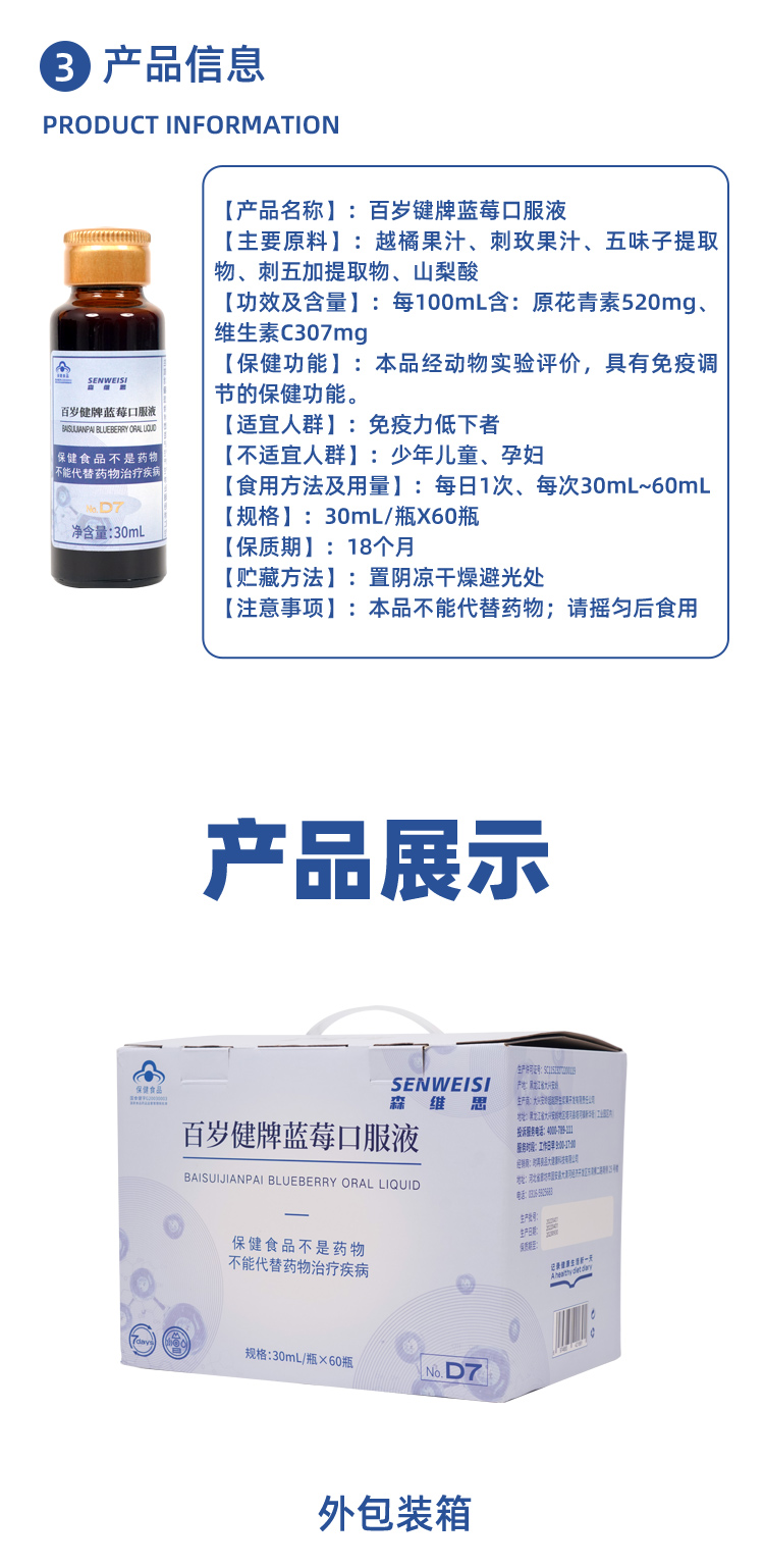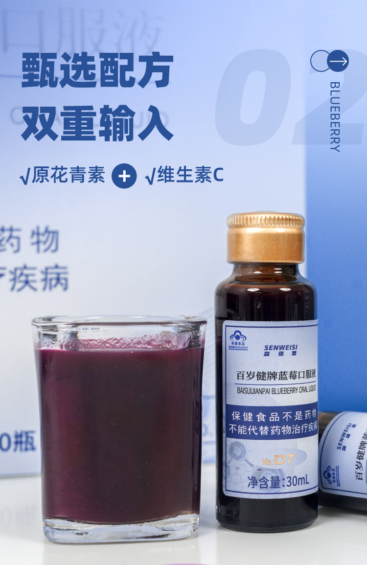 森维思 百岁健牌蓝莓口服液 30ml*60瓶/箱