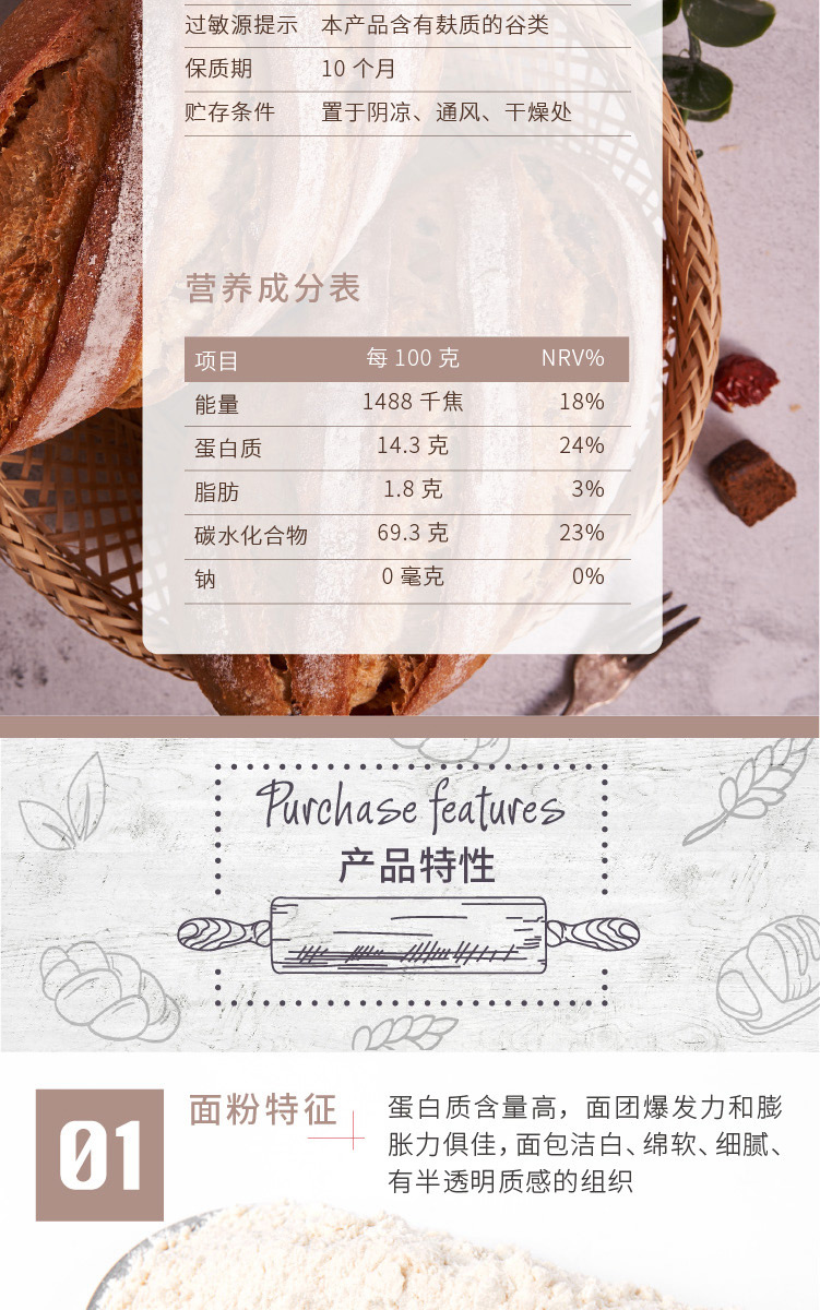私房专用/1箱10包*1kg/王后牌T55传统法式面包粉