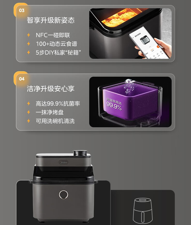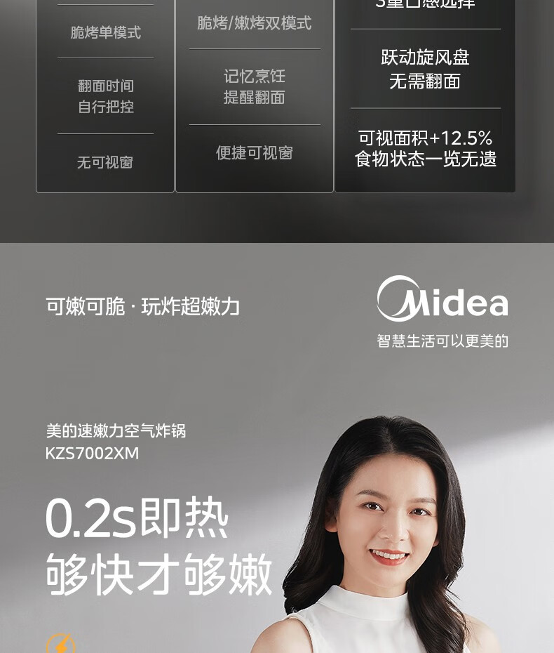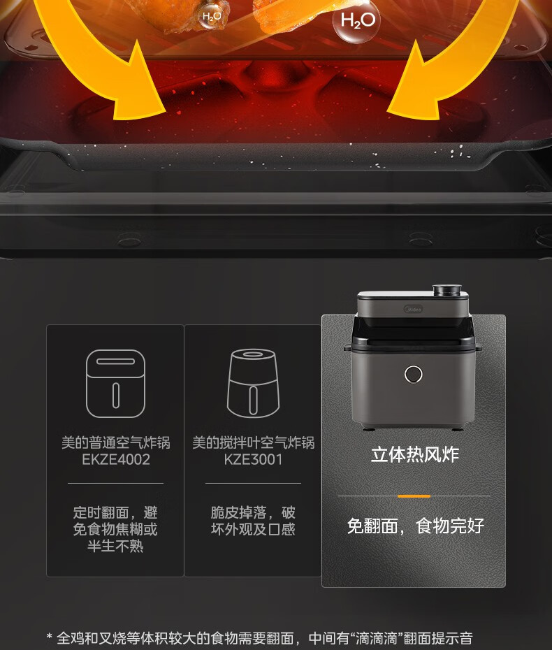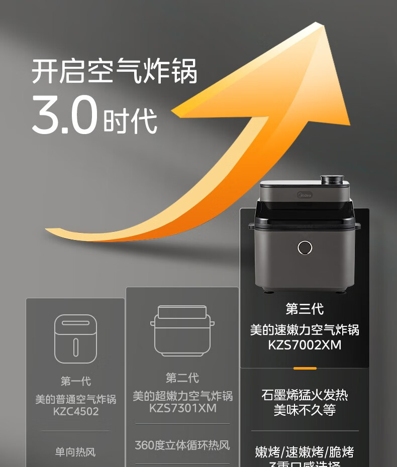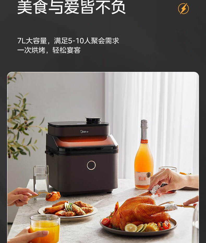 Midea/美的 空气炸锅KZS7002XM家用可视化多功能蒸汽烤箱薯条机大容量7升