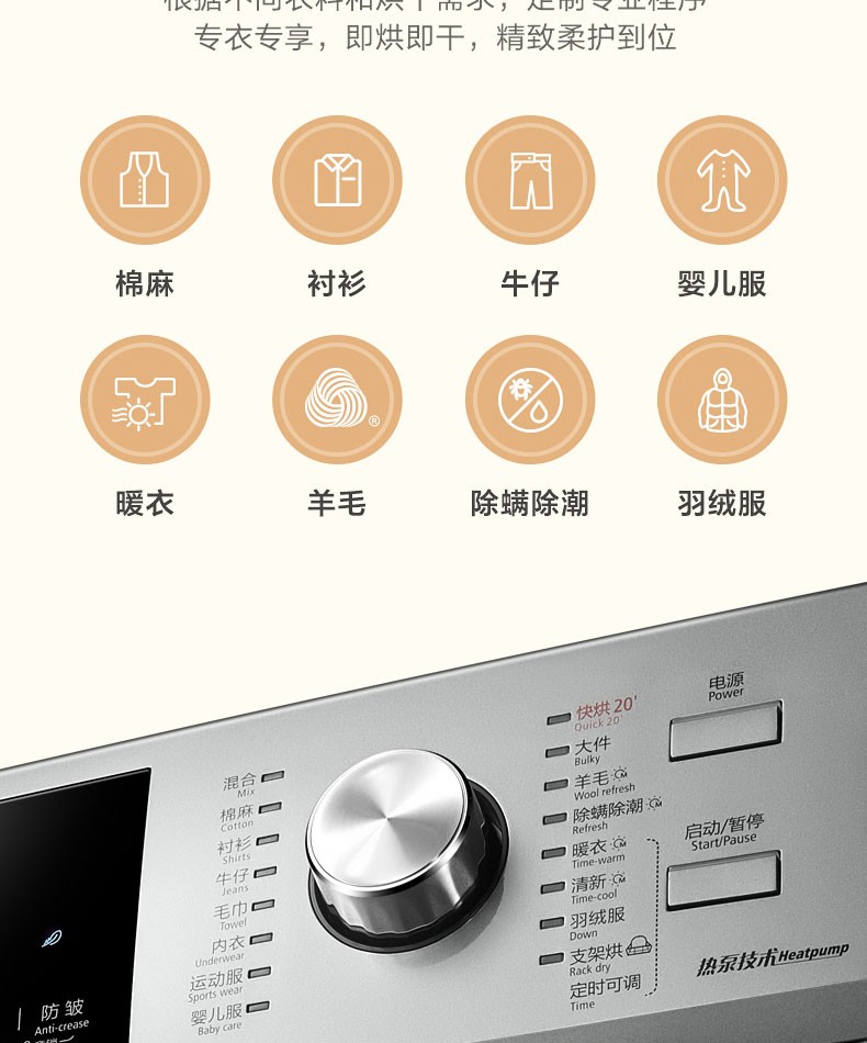 小天鹅(LittleSwan)洗烘套装10kg滚筒洗衣机全自动+热泵烘干机 TG100VC62WADY+TH100-H32Y