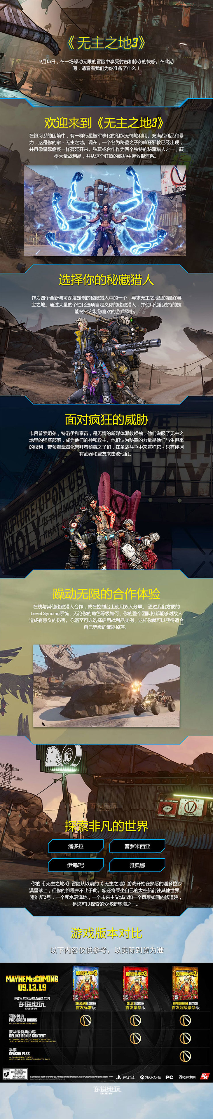 【畅玩卡可租】二手PS4游戏 无主之地3 中文版