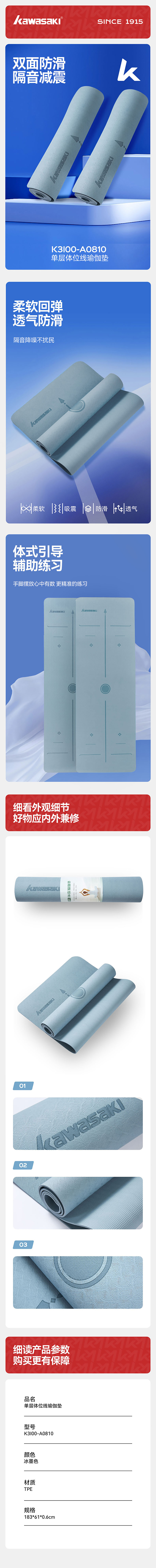 【积分兑换】川崎 瑜伽垫 K3I00-A0810-2 冰墨色