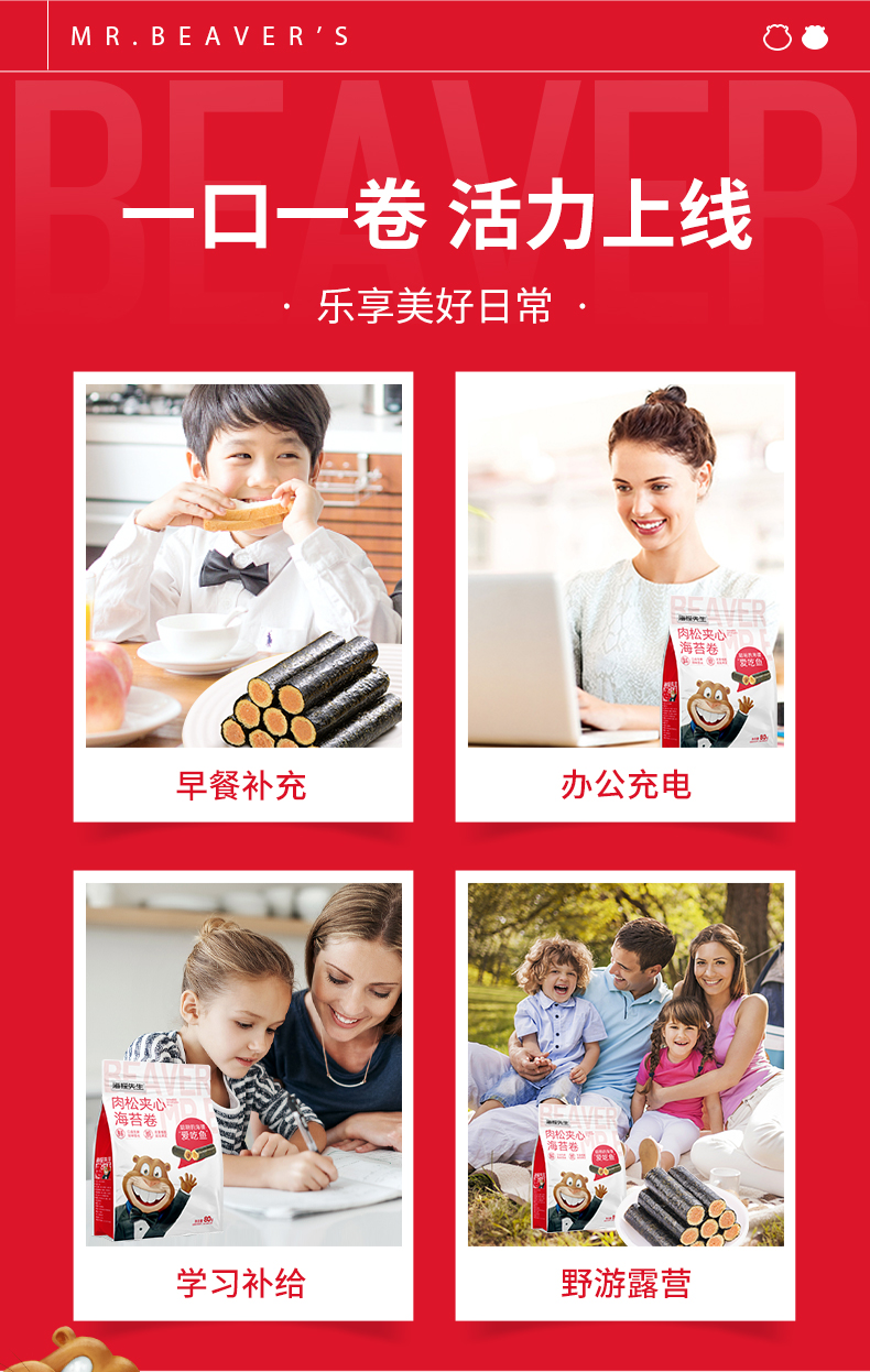 海狸先生肉松海苔卷80g*4袋