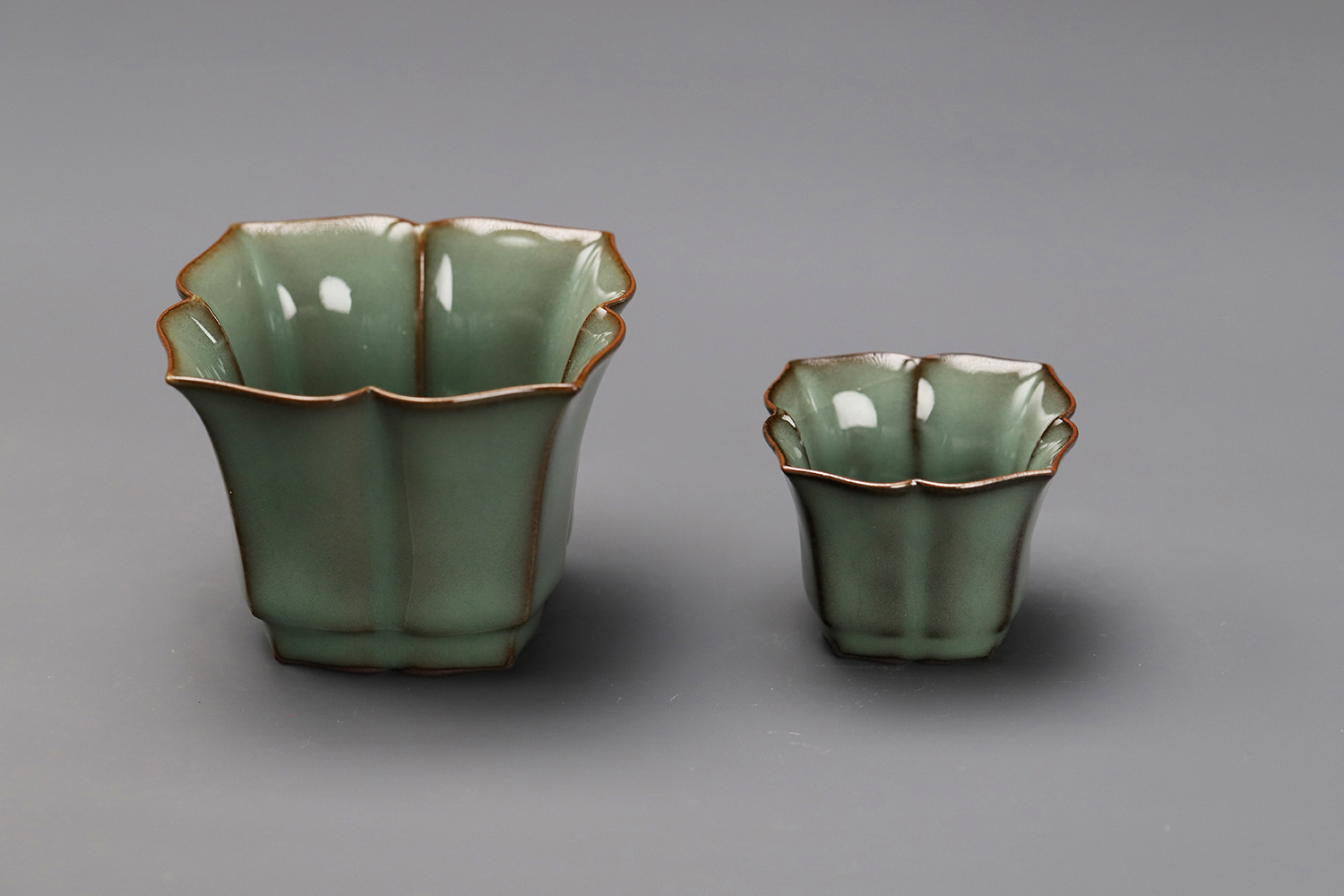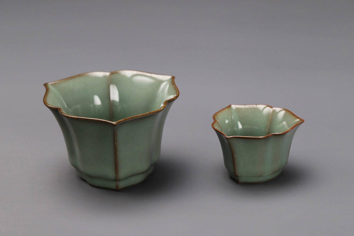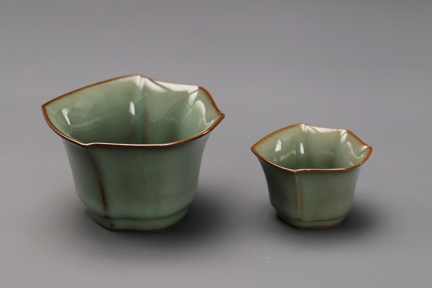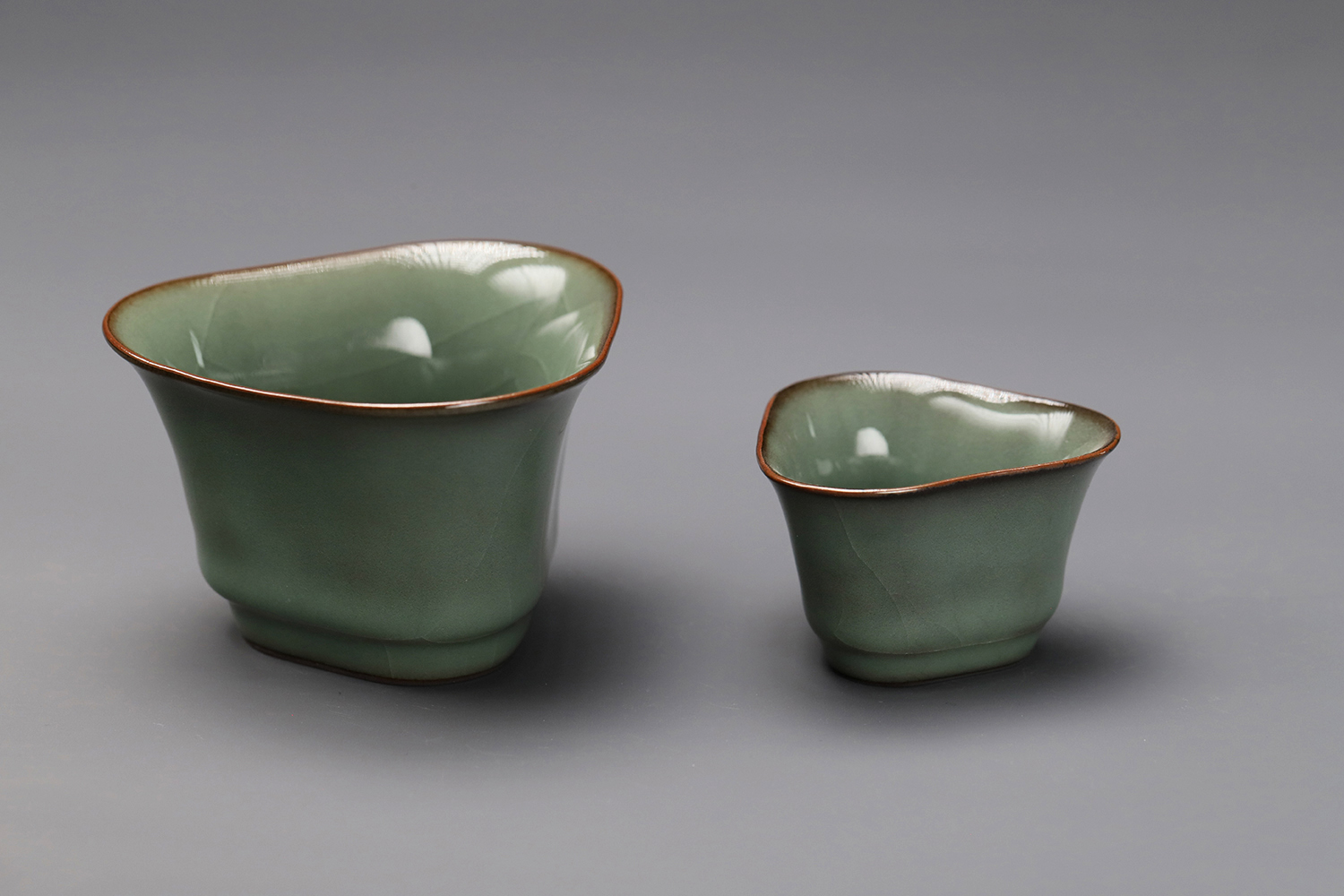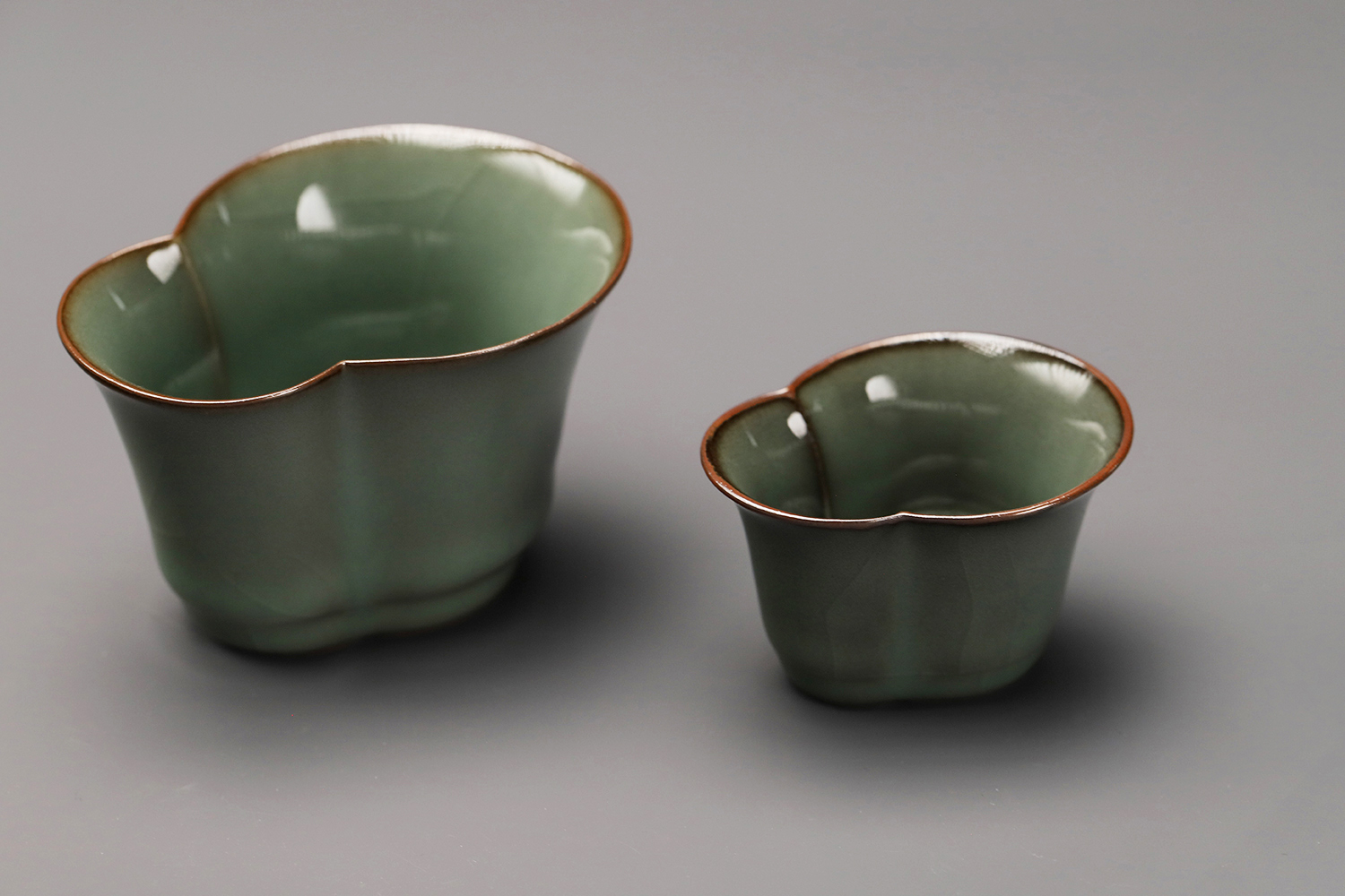 杯子都是异形,大款高度约5厘米,小款高度约3.5厘米。