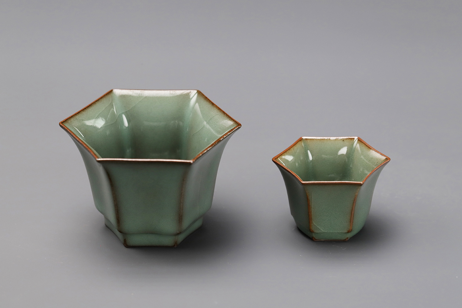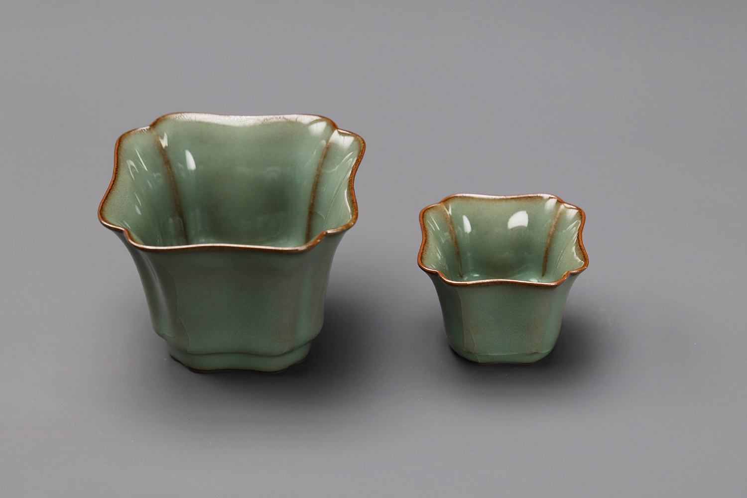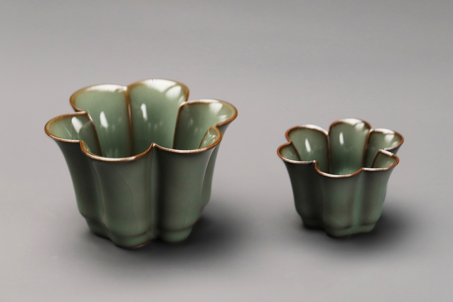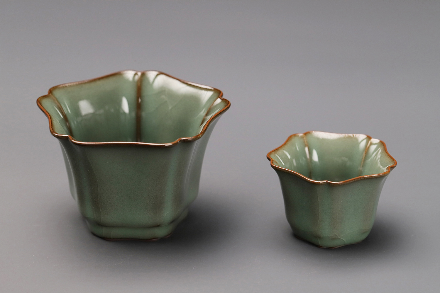 杯子都是异形,大款高度约5厘米,小款高度约3.5厘米。