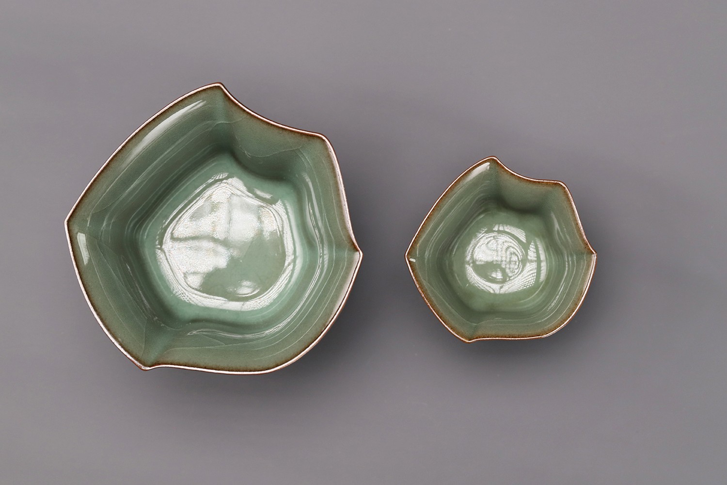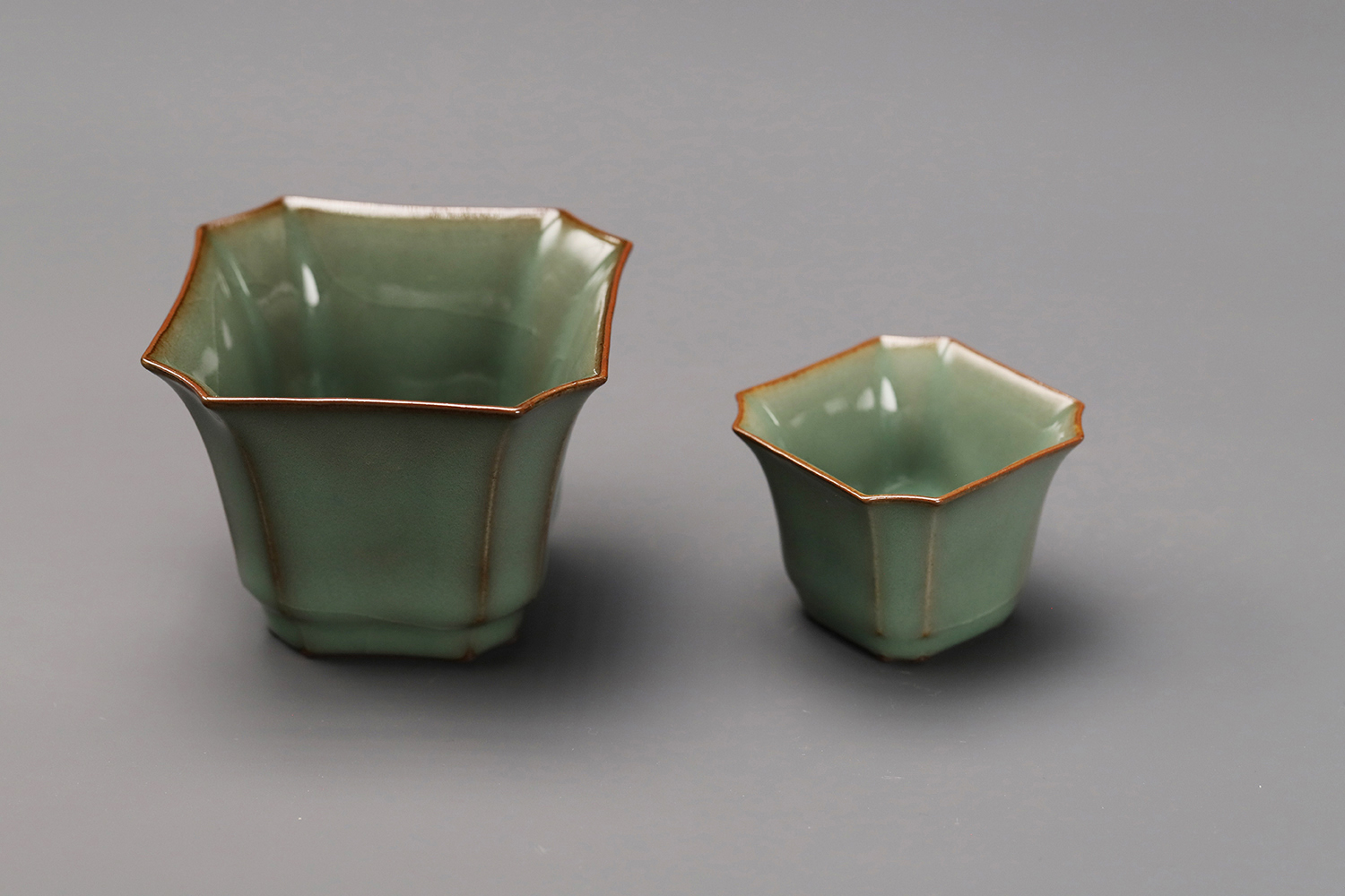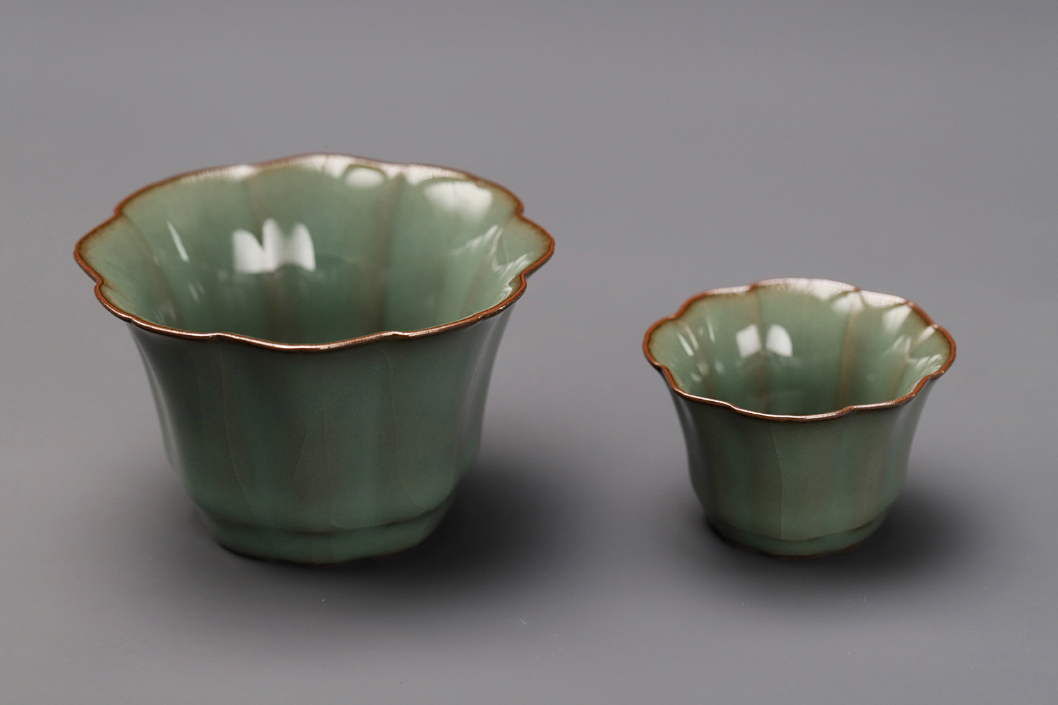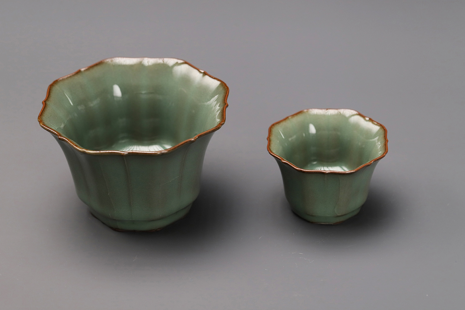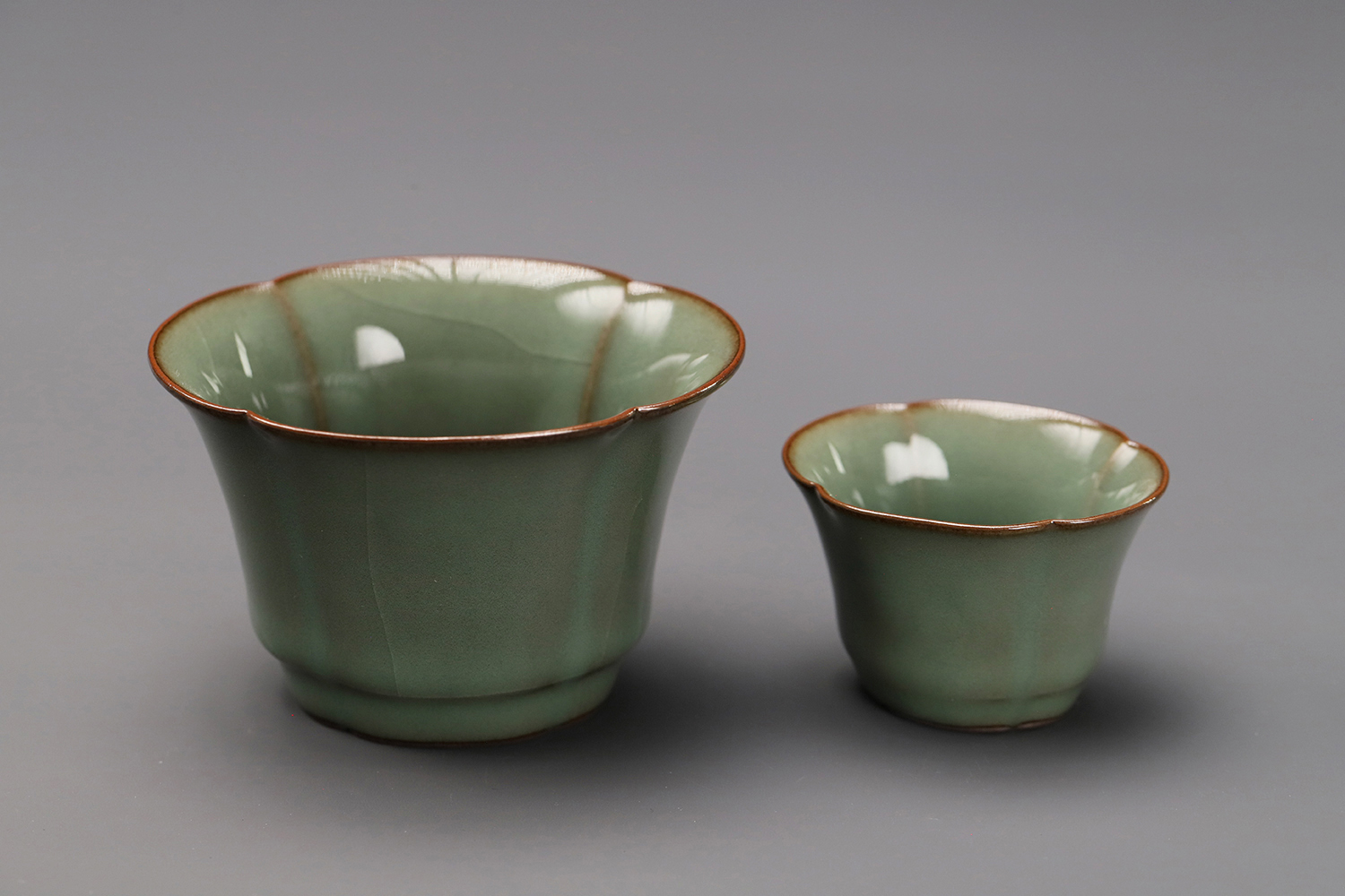 杯子都是异形,大款高度约5厘米,小款高度约3.5厘米。