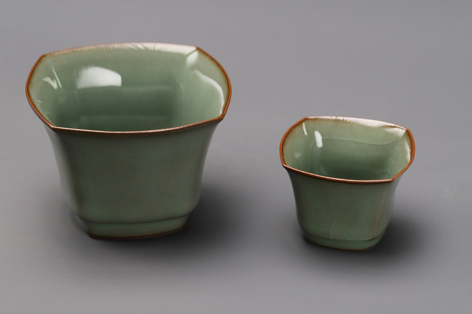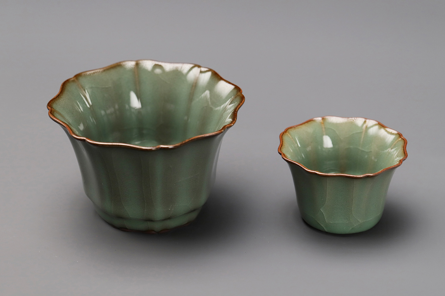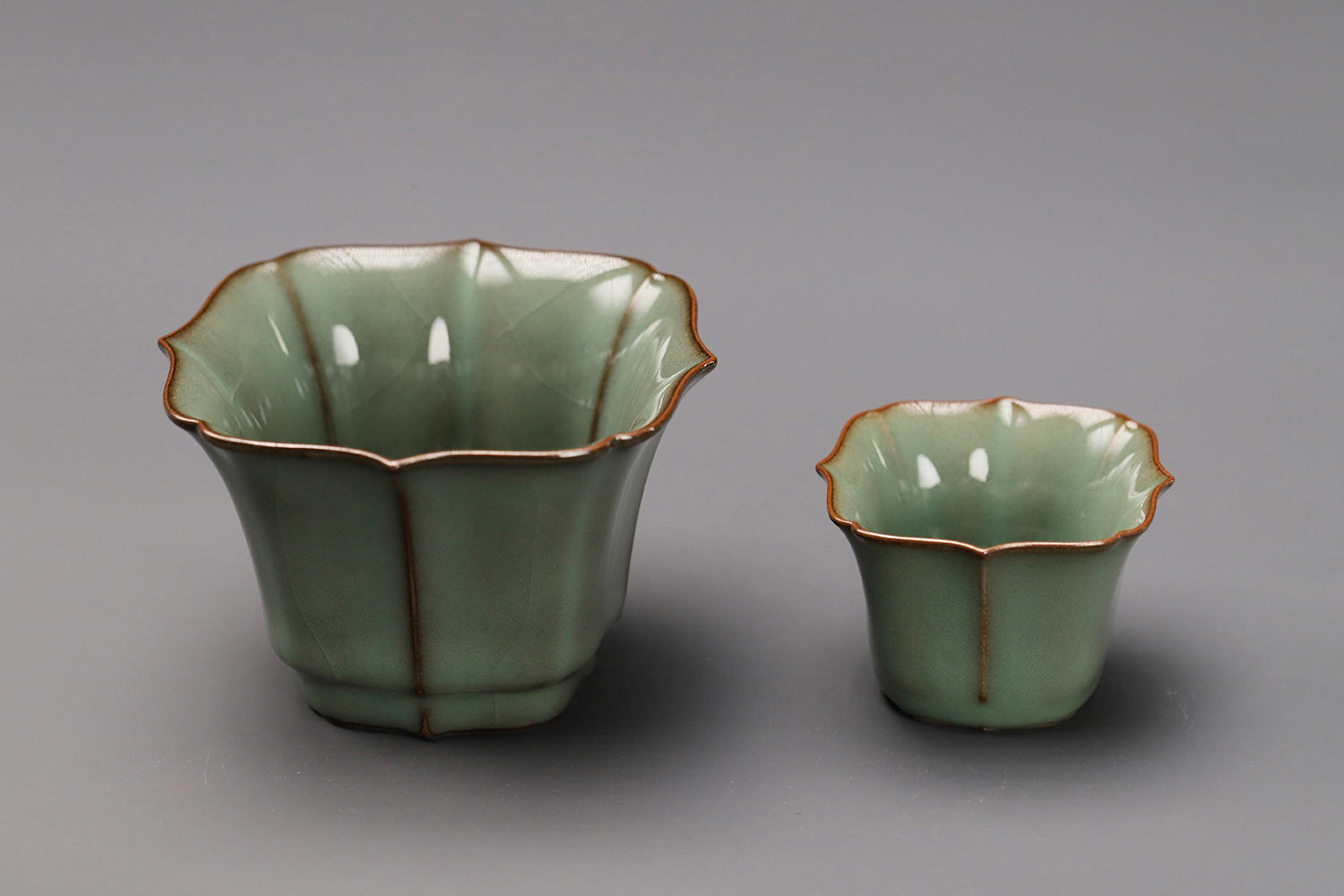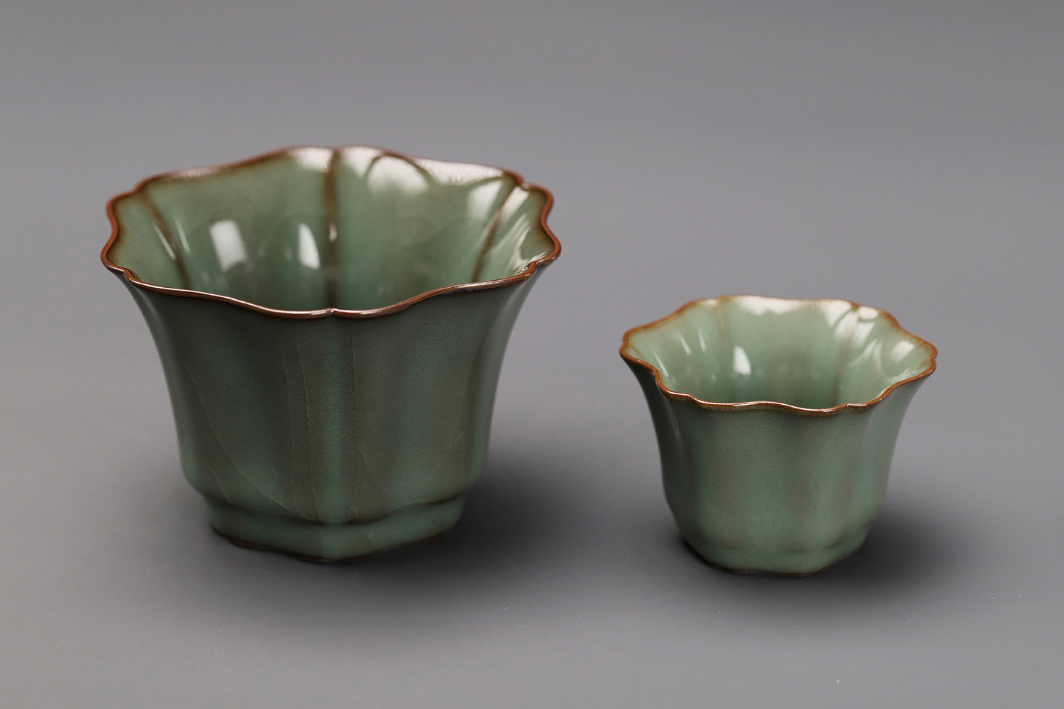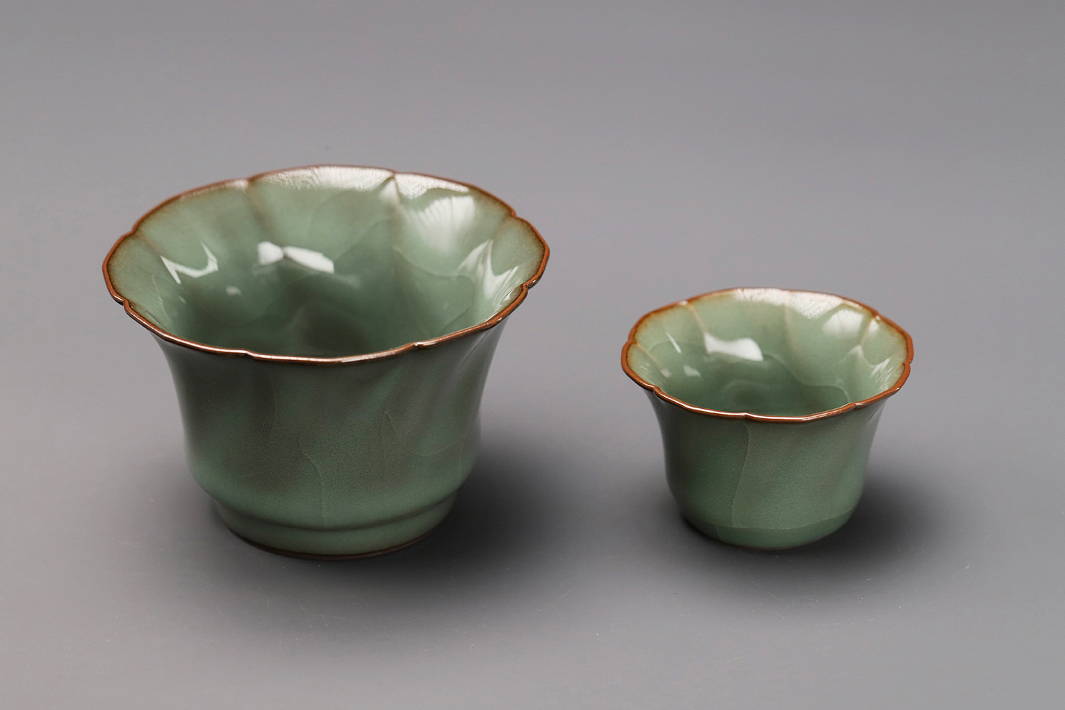 杯子都是异形,大款高度约5厘米,小款高度约3.5厘米。