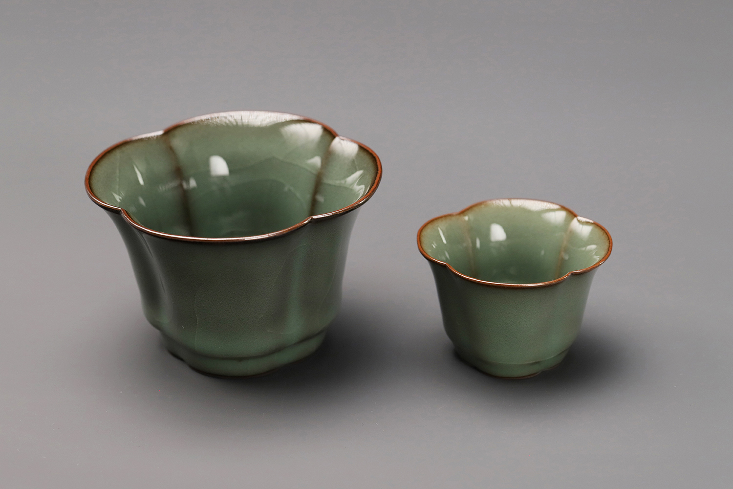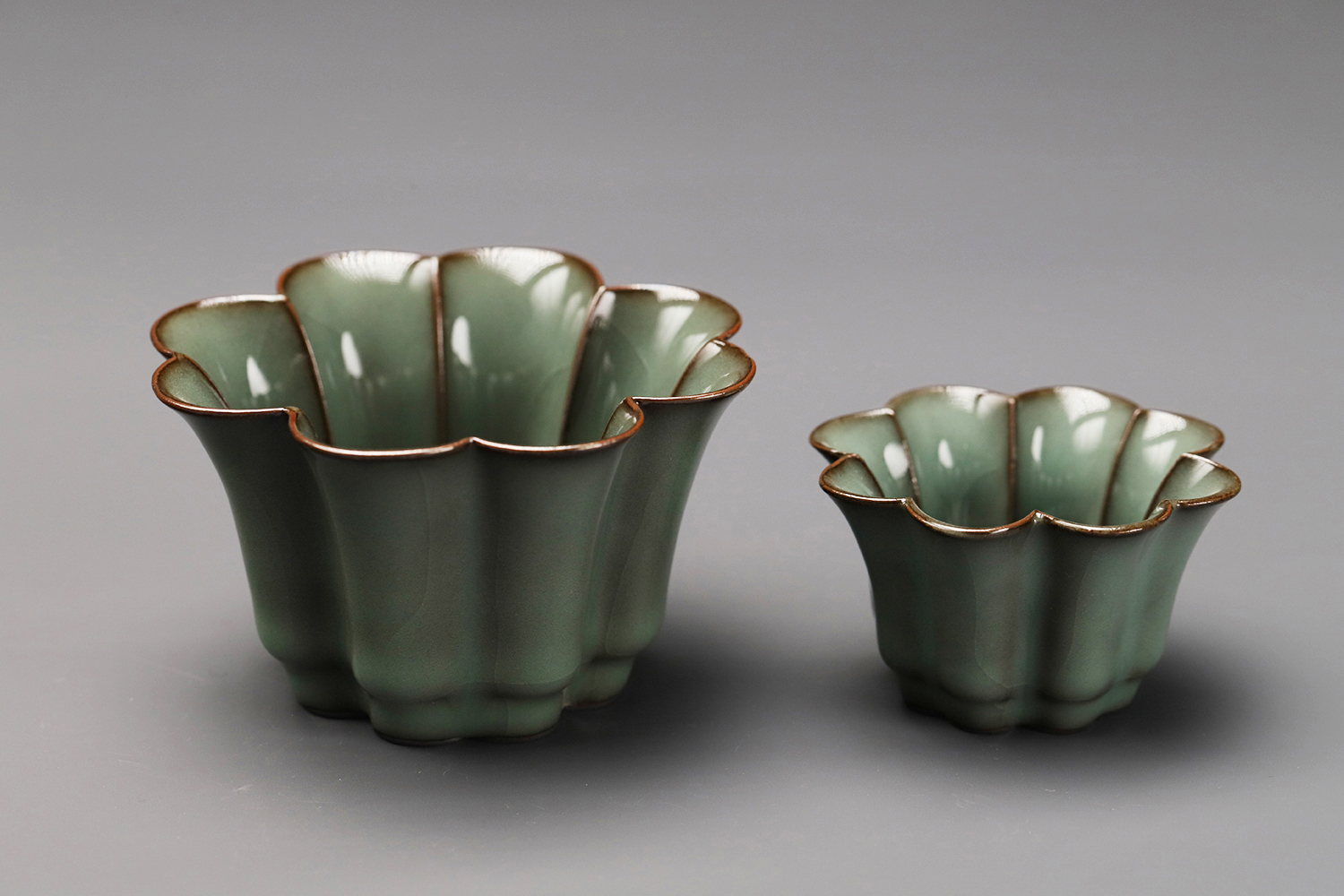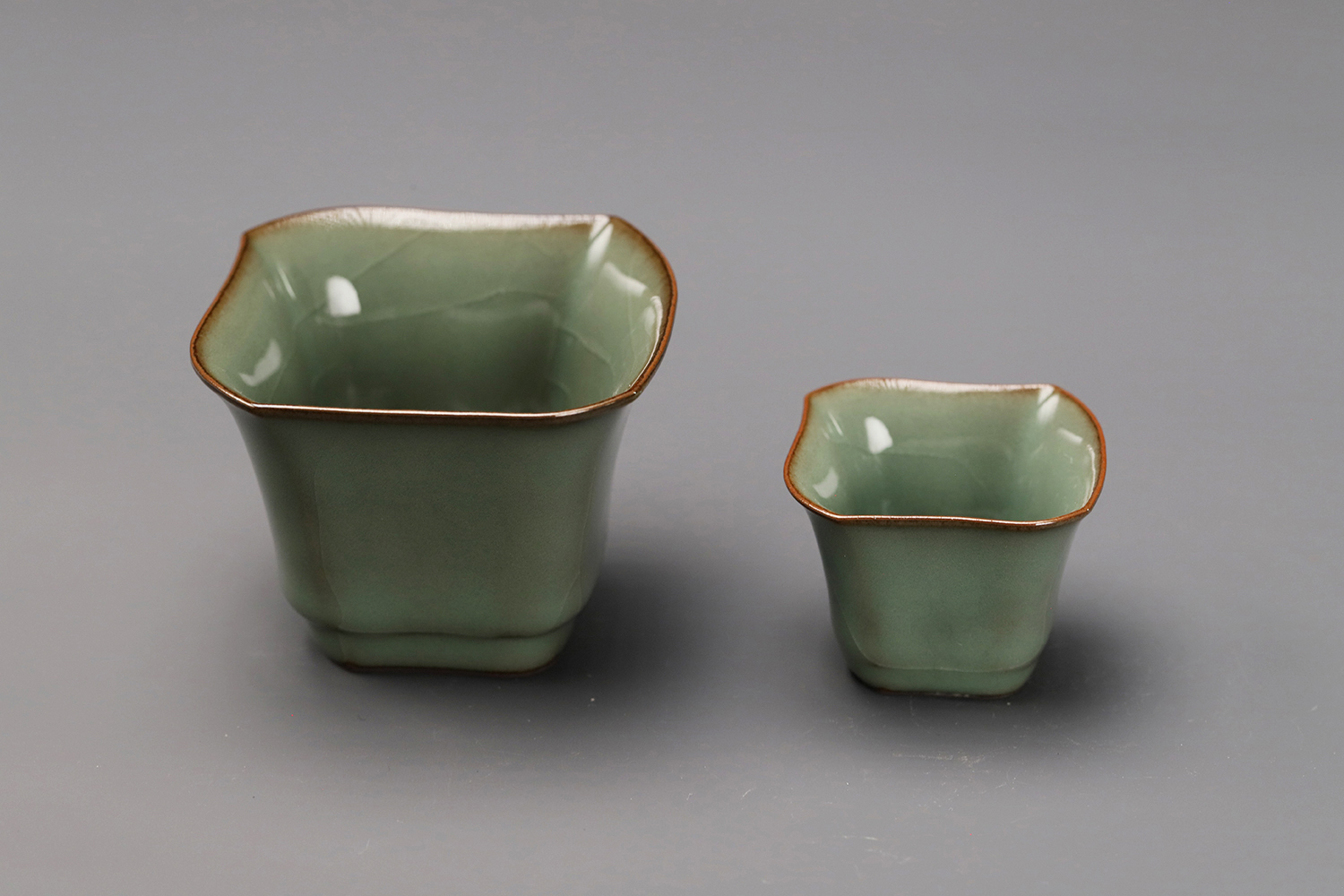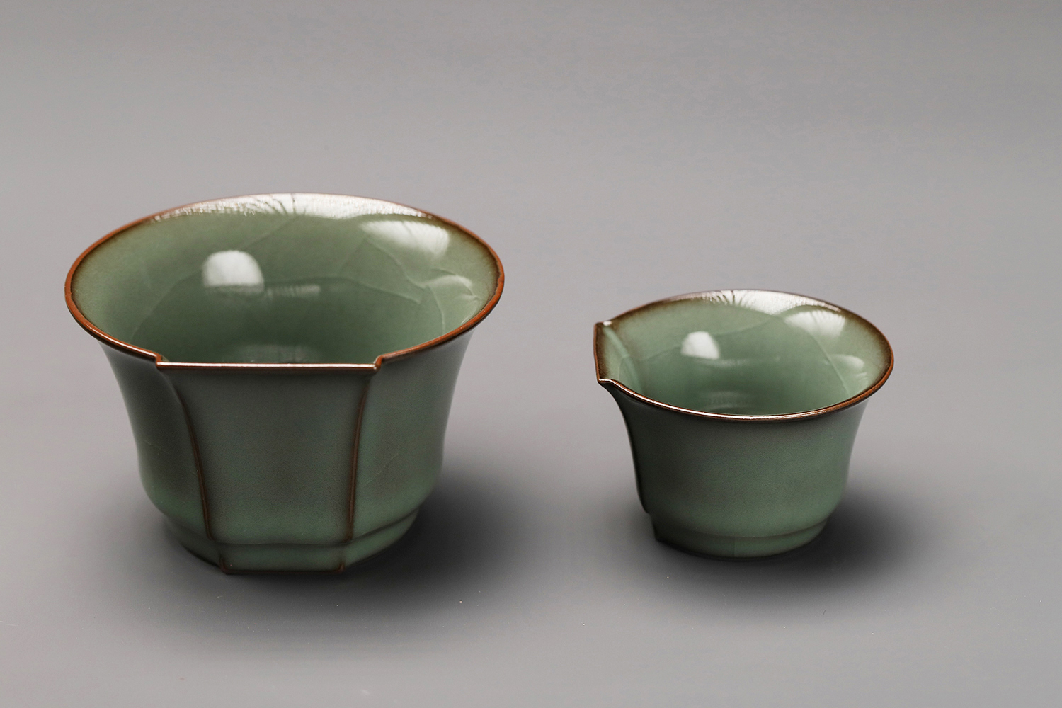 杯子都是异形,大款高度约5厘米,小款高度约3.5厘米。