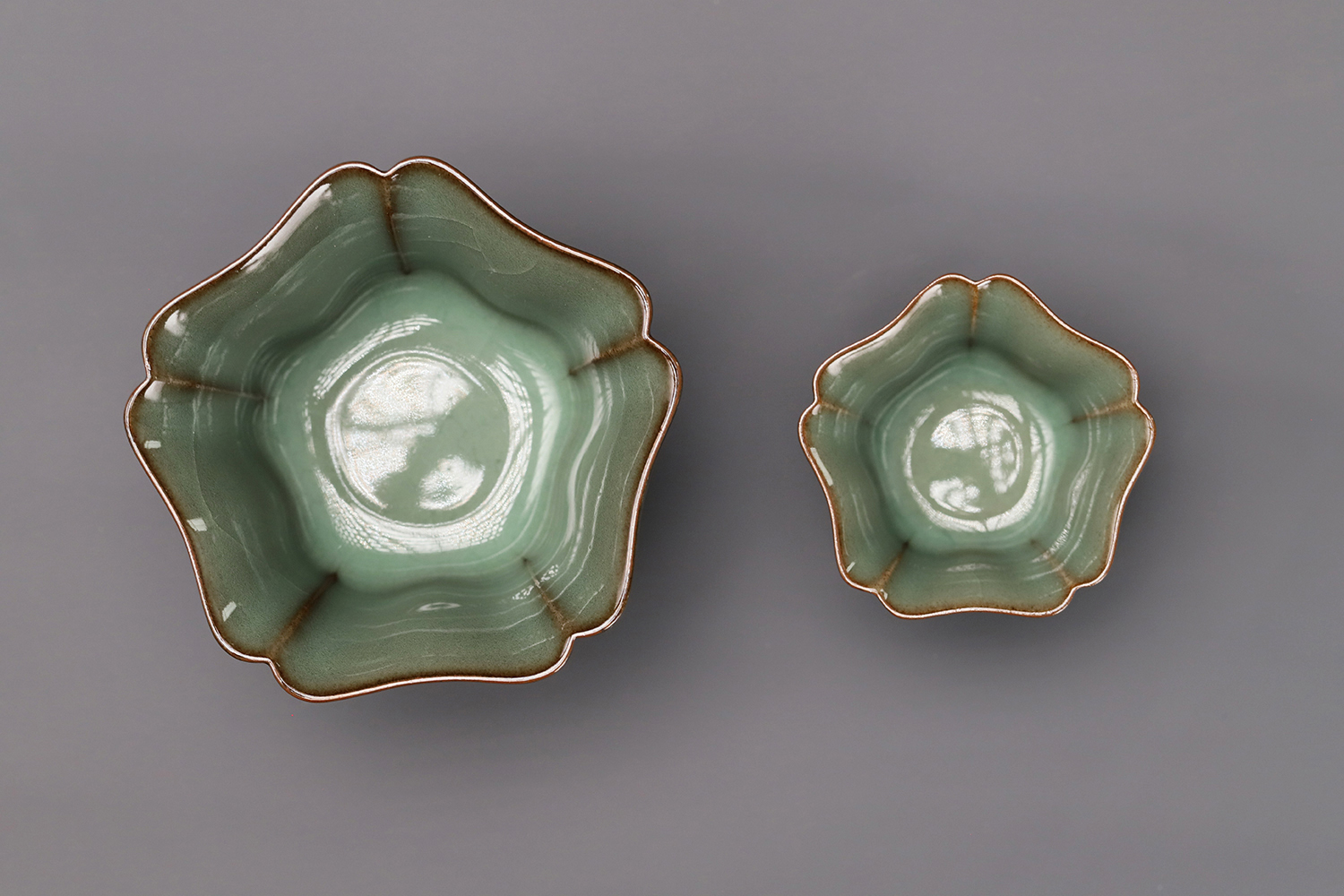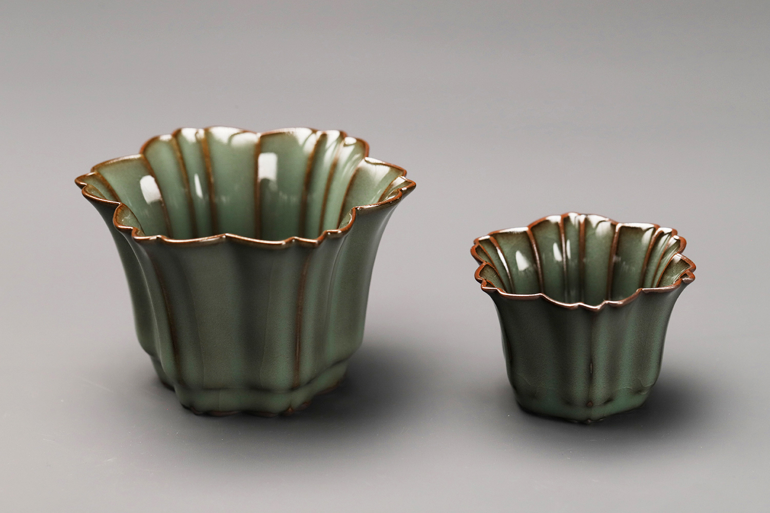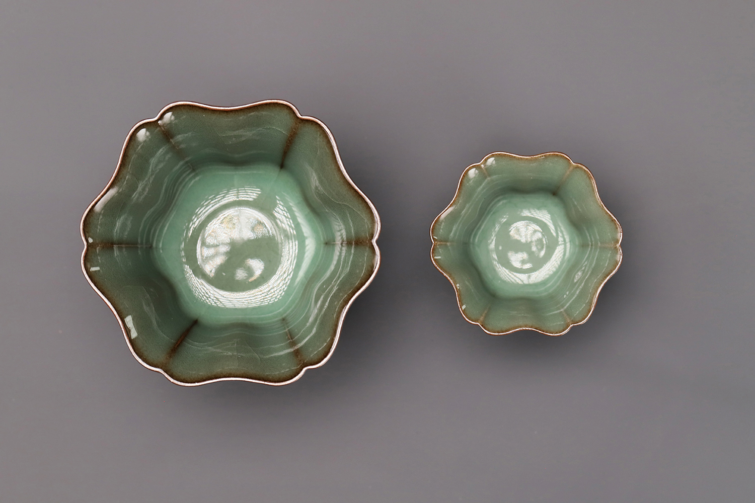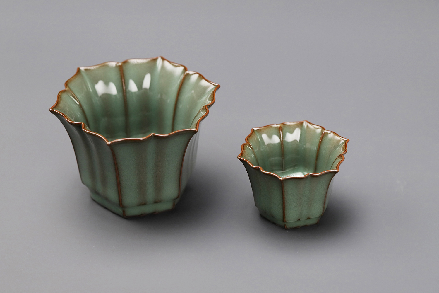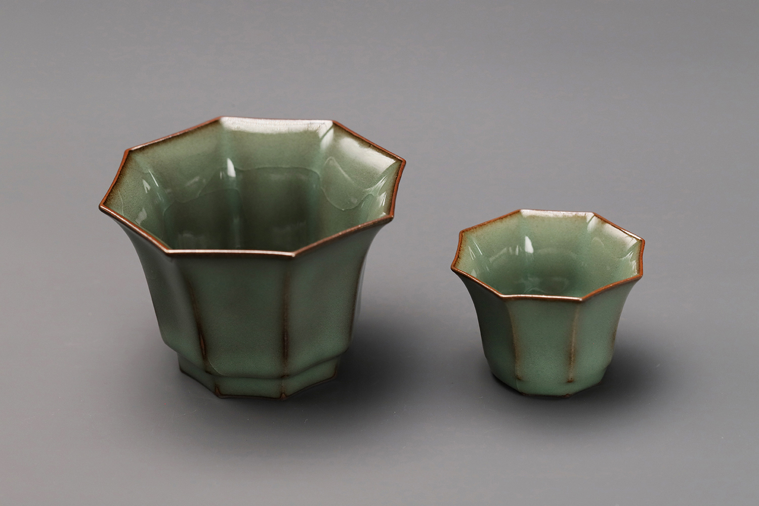 杯子都是异形,大款高度约5厘米,小款高度约3.5厘米。