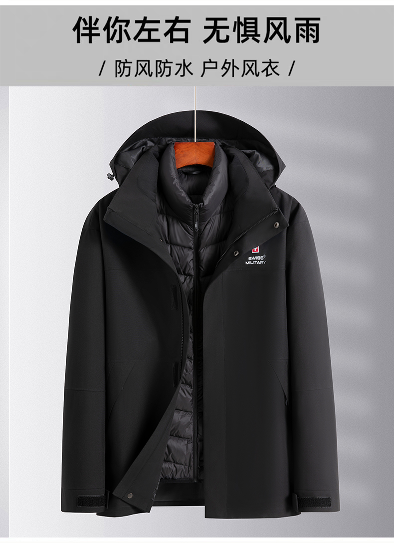 线下专柜有售,非电商款!【瑞士百年户外专业品牌】SWISS MILITARY瑞士军工/二级冲锋衣 真羽绒内胆 舒适保暖最