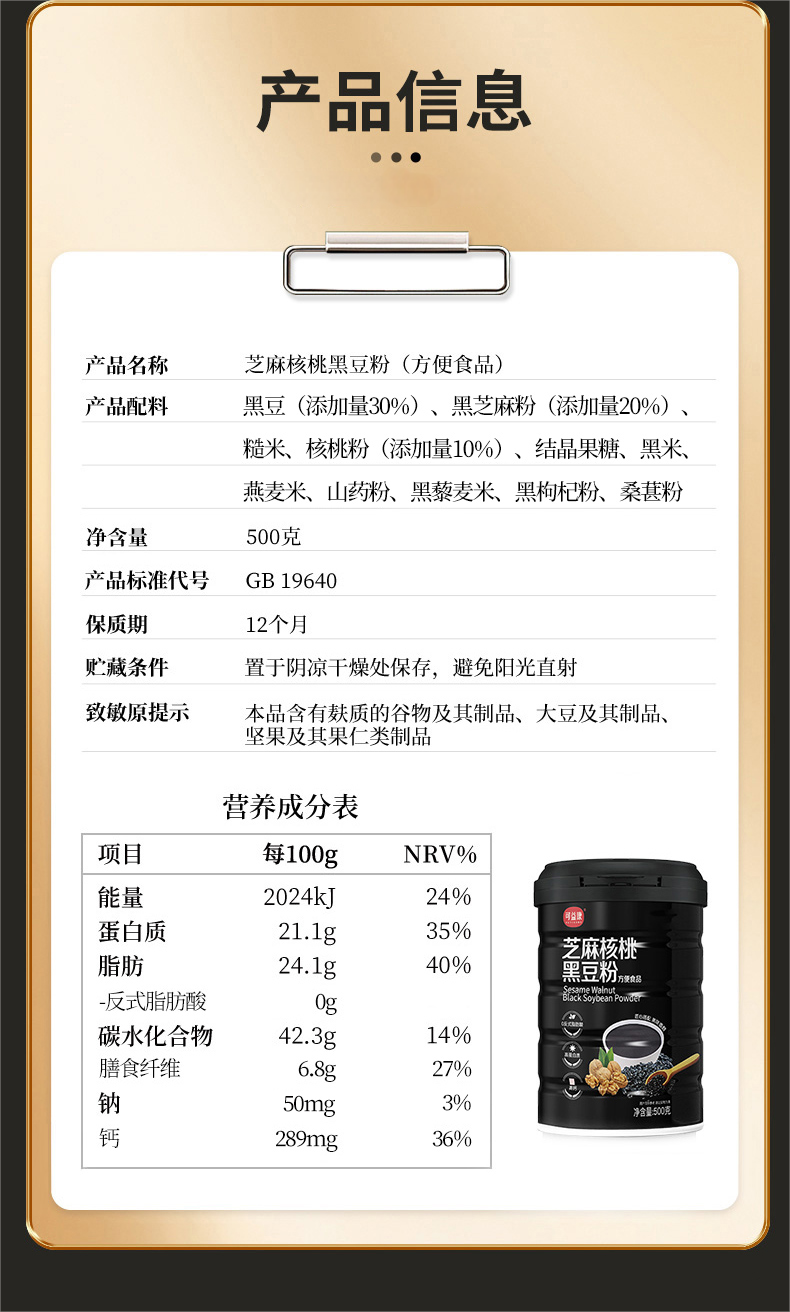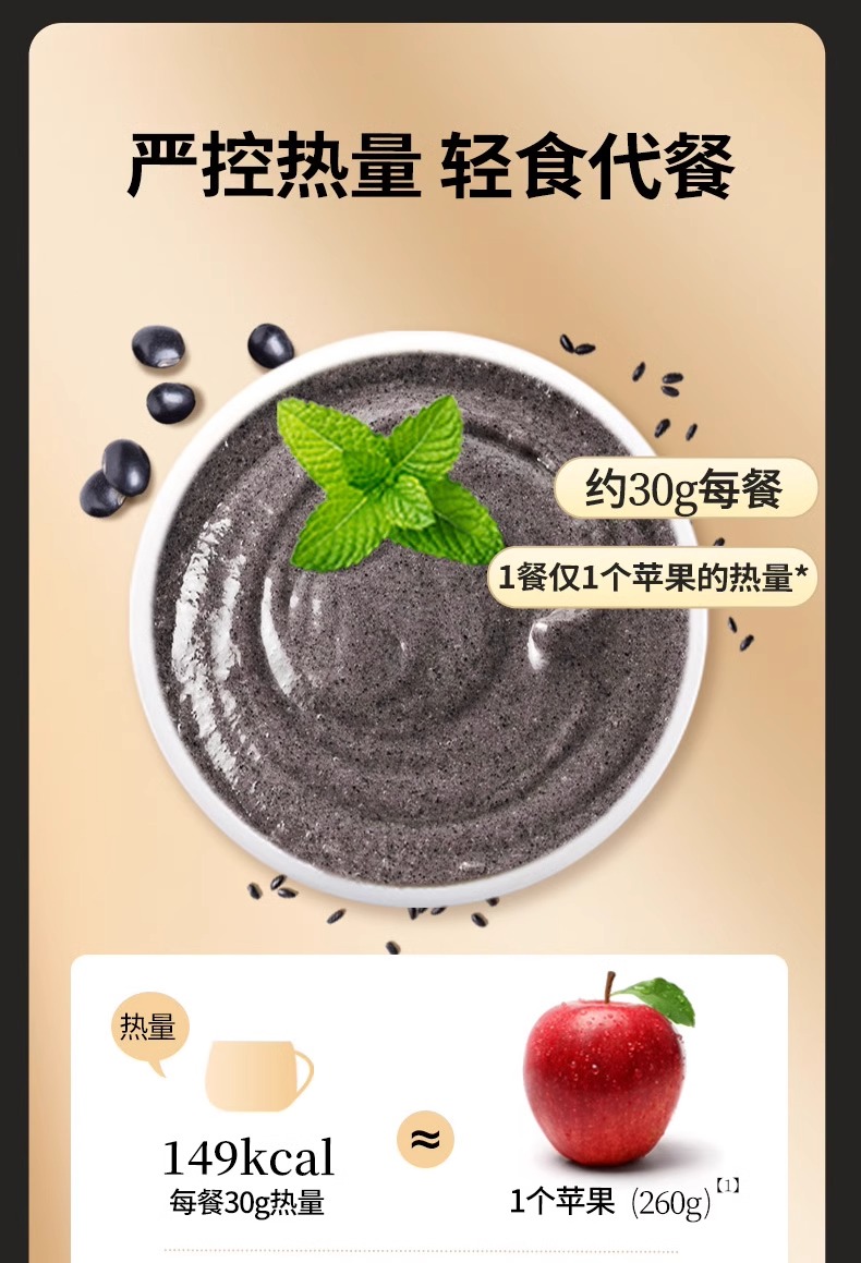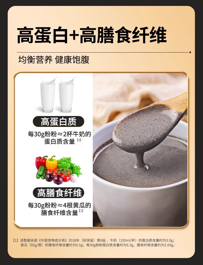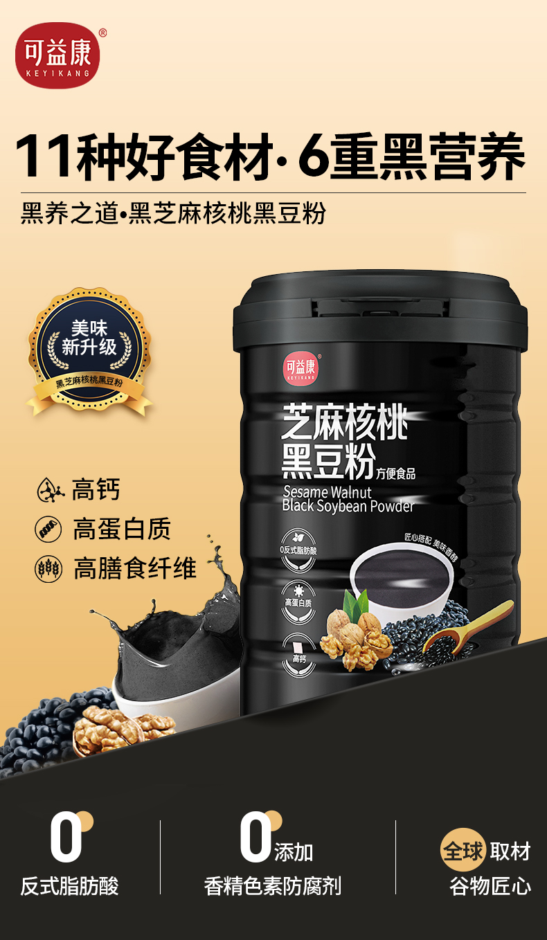可益康 核桃芝麻黑豆代餐粉 6种黑色食材 醇香饱腹 500g/罐
