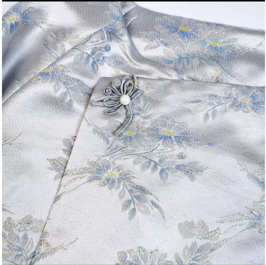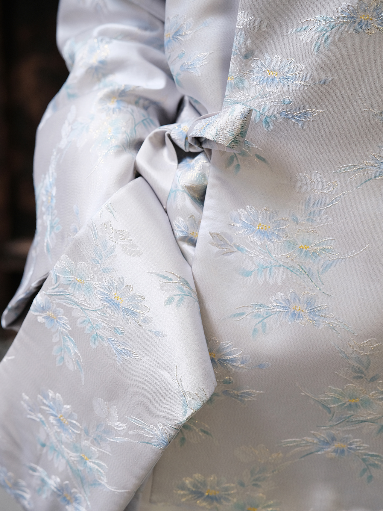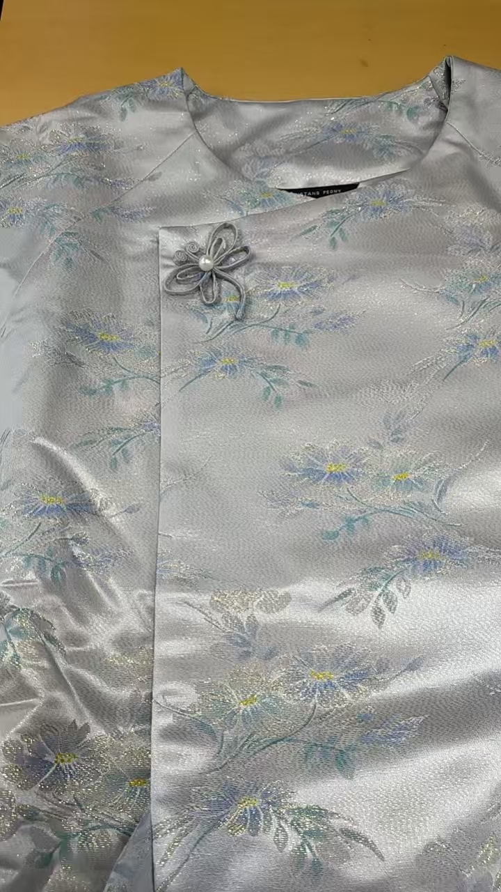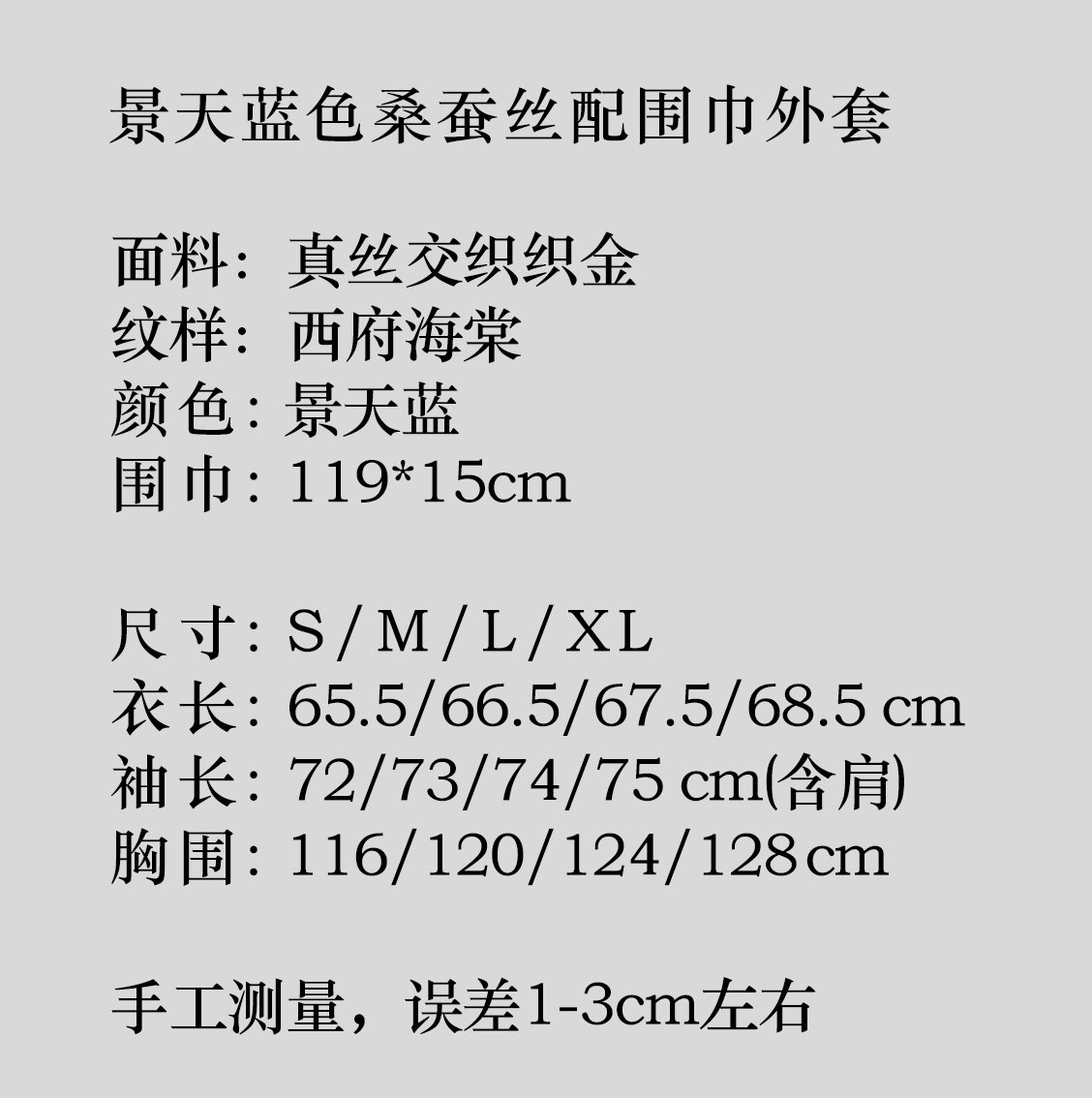 盛唐牡丹| 景天蓝色桑蚕丝配围巾外套