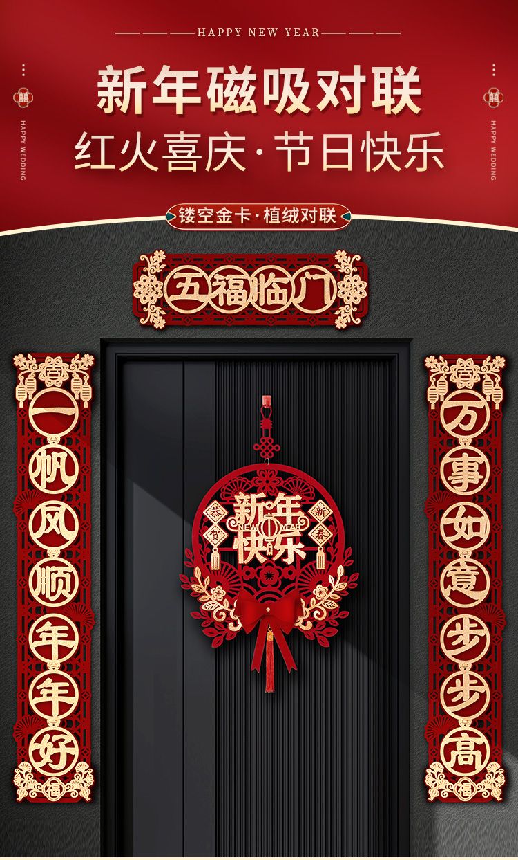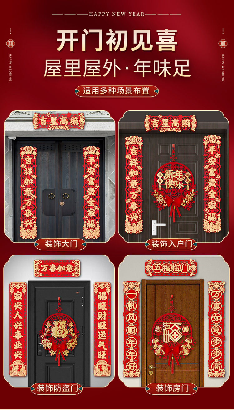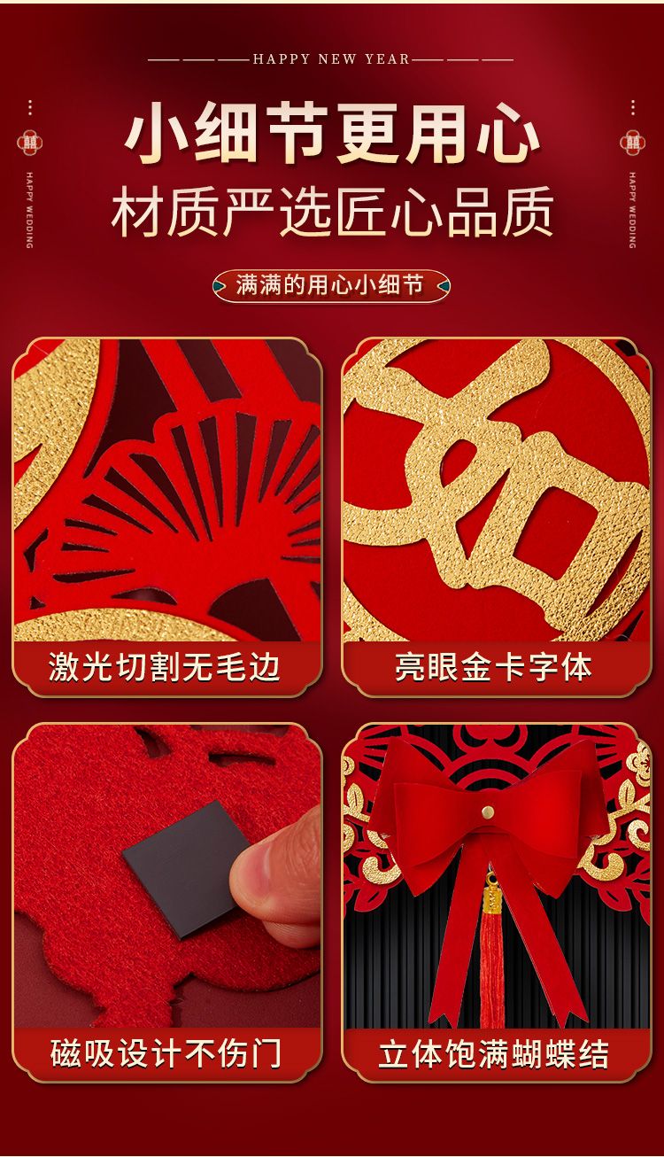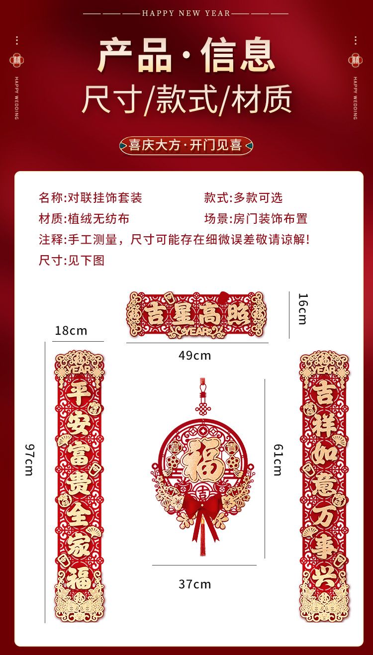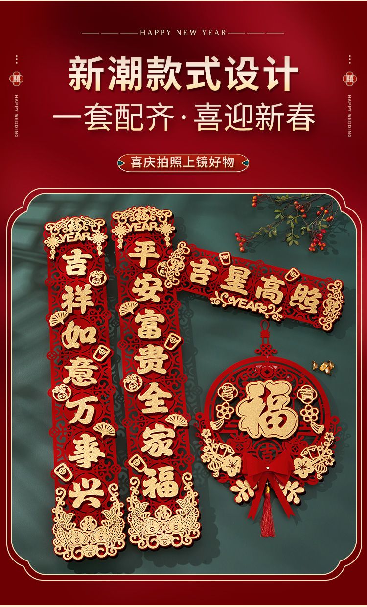 新款春节新年对联入户门大门新居入宅过年福字挂件元旦植绒布喜庆
