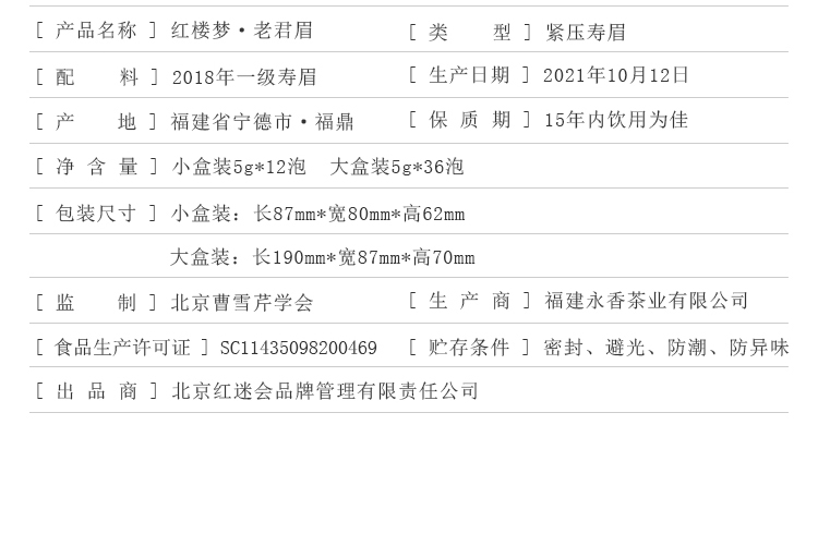 色色好味 红楼语茶 · 2018老君眉白茶片