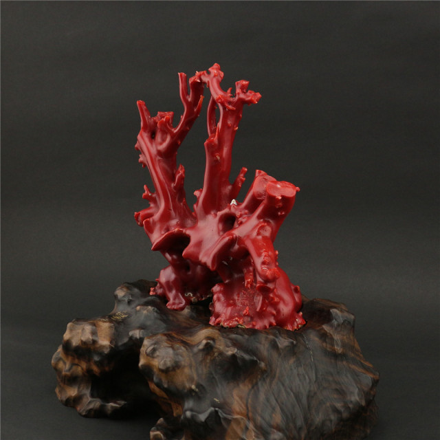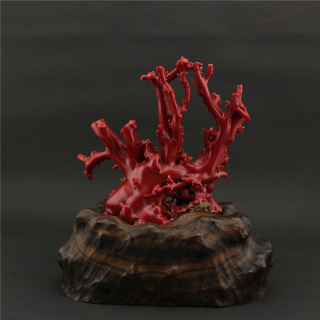 名贵阿卡珊瑚树摆件,色如牛血,形态优美,实为难得的收藏佳品。