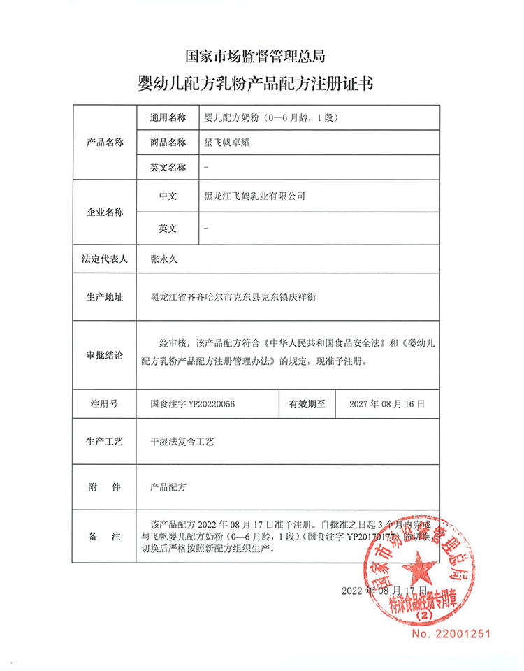 飞鹤星飞帆卓耀奶粉1段750g(0-6个月宝宝)