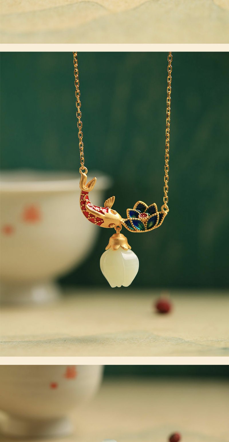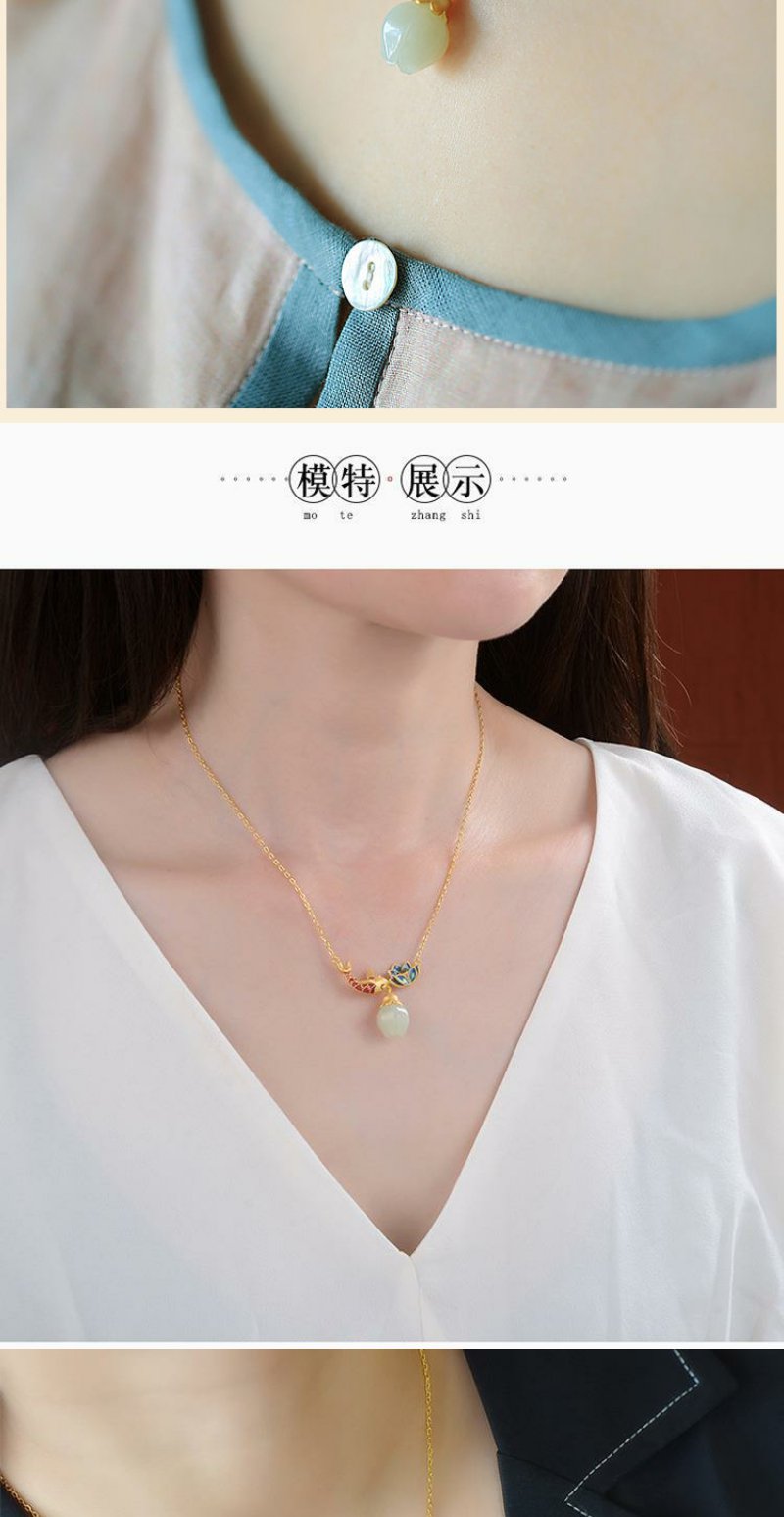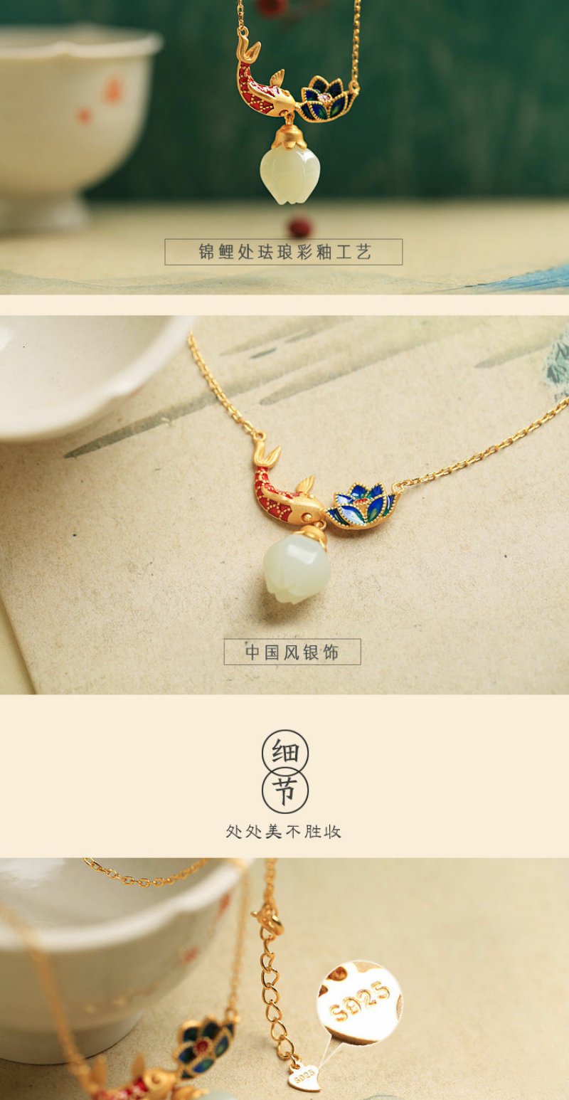 银镀金景泰蓝莲花吊坠复古民族风女款宫廷套链项坠