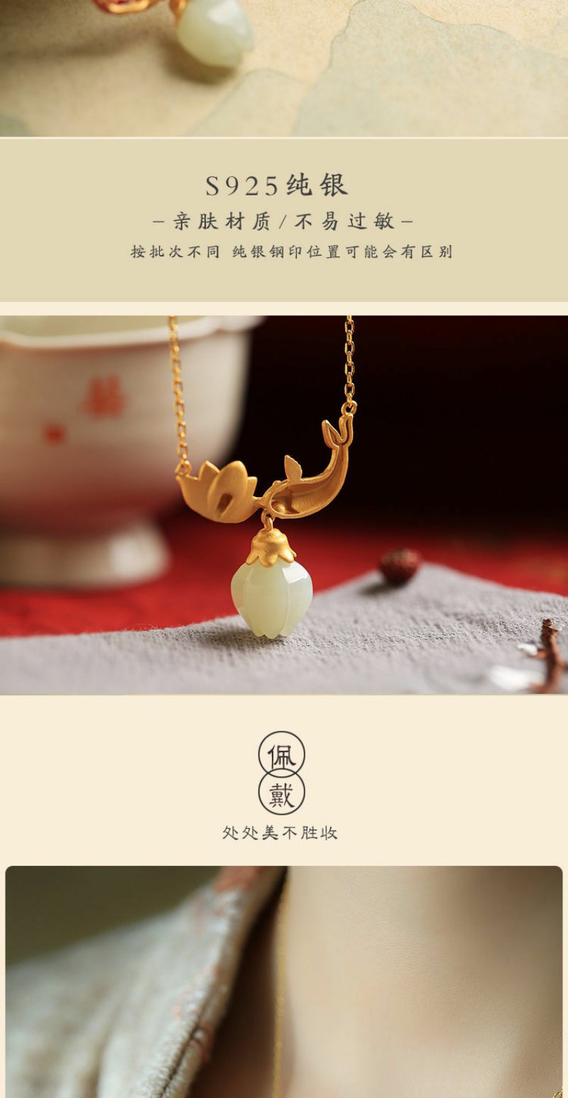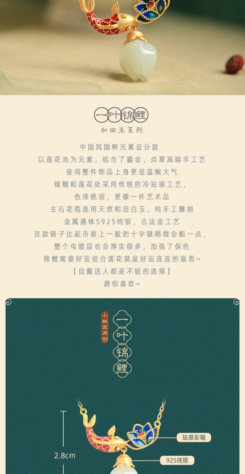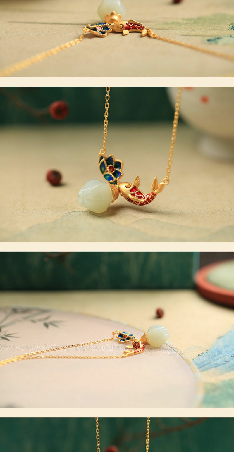 银镀金景泰蓝莲花吊坠复古民族风女款宫廷套链项坠