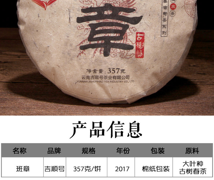 【限时优惠】今天下单送班章金芽!2017年名山古树茶 老班章普洱生茶357g