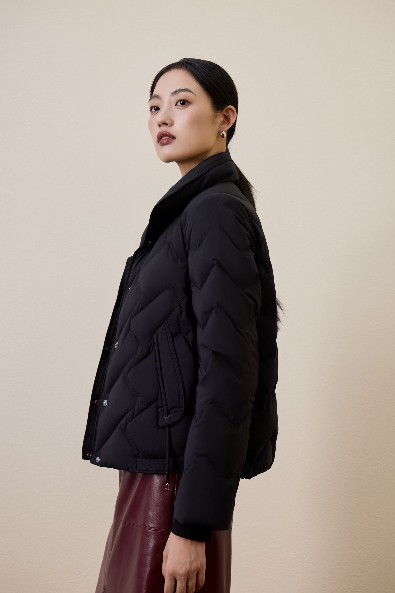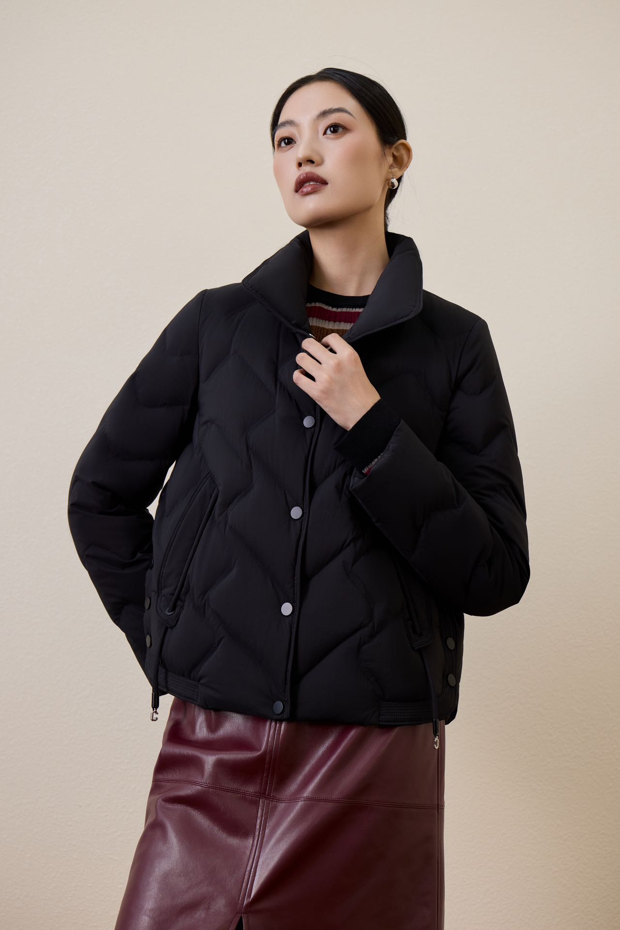 伯妮斯茵 | 简约通勤 短款立领白鸭绒羽绒服 波浪绗缝工艺 轻盈保暖 日常通勤款 SZ6R20 漆黑色