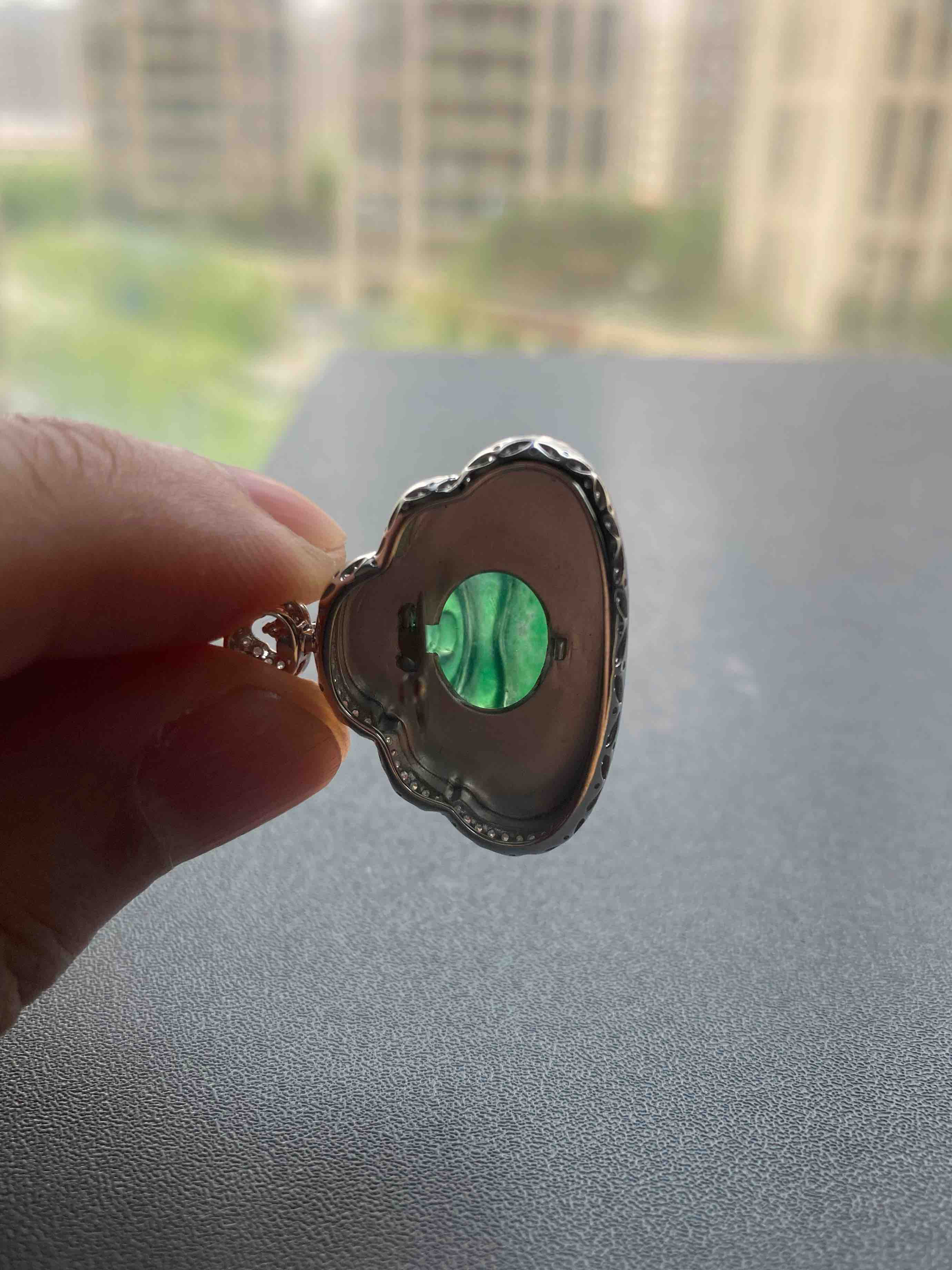 禄来家的爆款,四位数拿下大尺寸高冰种阳绿翡翠弥勒佛,危地马拉翡翠,上身贵气十足,大尺寸难得,种水晶莹剔透,荧光四射,阳绿艳丽,18k白金钻石镶嵌,后开盖高货款式,无论是自己戴还是送长辈都很棒,性价比绝了,26.1×18.7×2.5mm,镶嵌后27×28.3×7.2mm