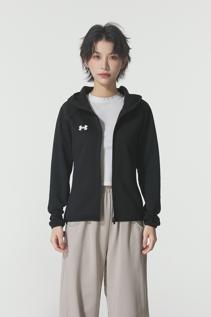 安德玛团队 女款黑色 夹克/外套 针织连帽夹克
